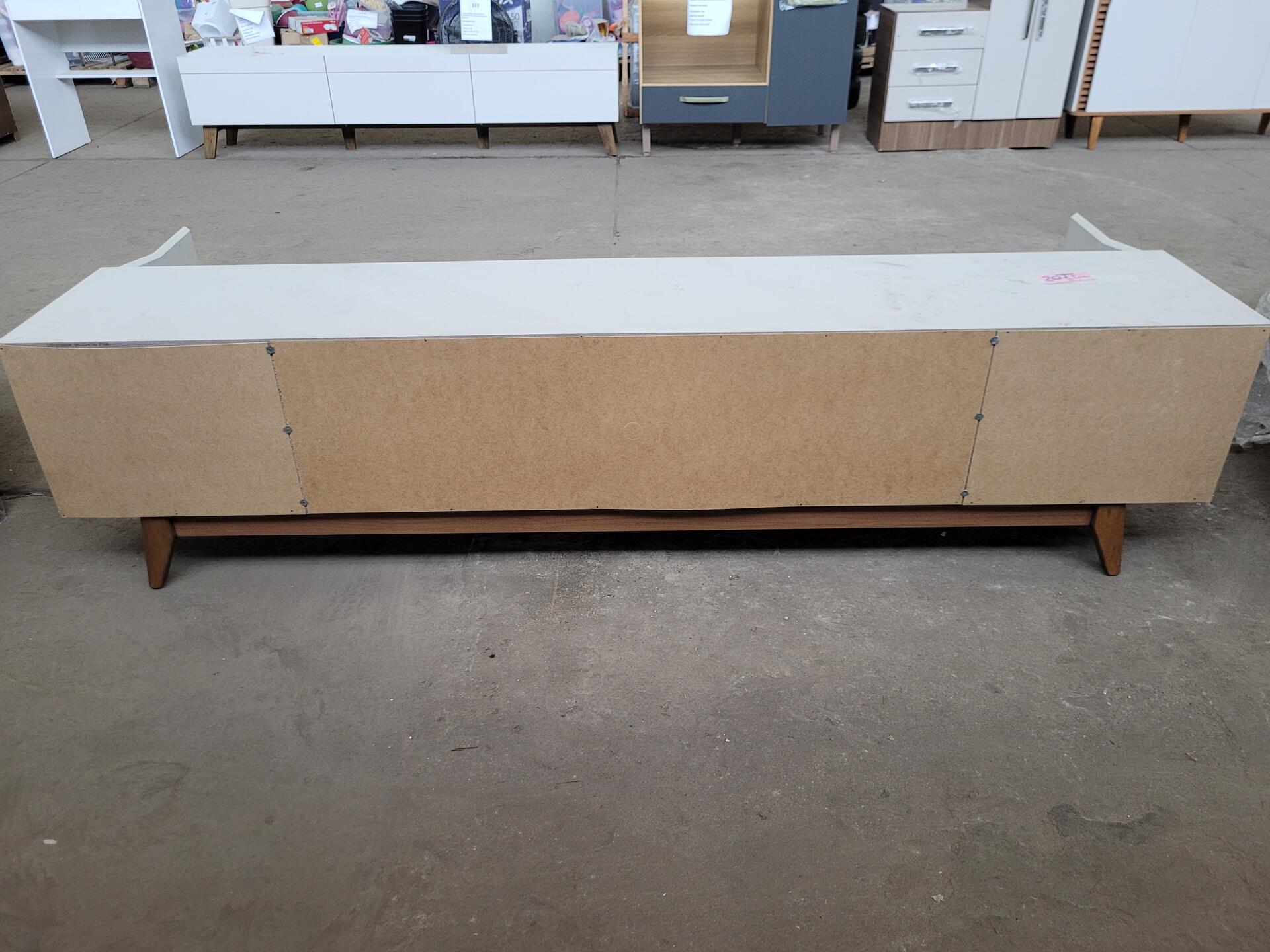 RACK ATÉ 75 POLEGADAS PÉS EM MADEIRAS EM MADEIRA MACIÇA 220CM FLYNT - NO ESTADO EM QUE SE ENCONTRA