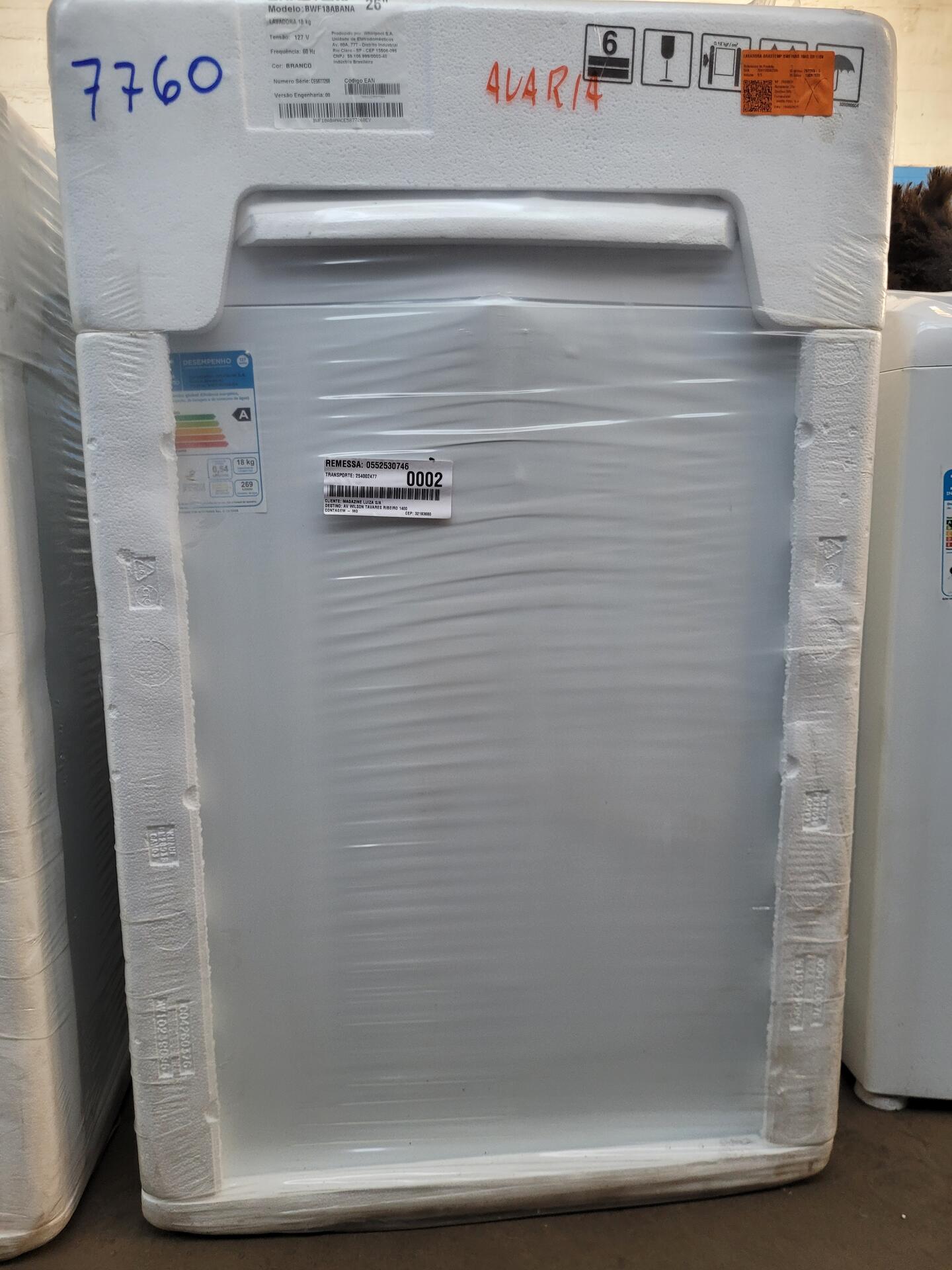 LAVADORA BRASTEMP BWF18AB 18KG BR 110V - NO ESTADO EM QUE SE ENCONTRA