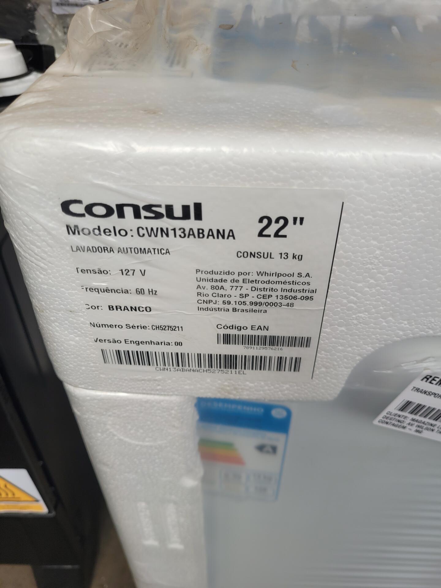 LAVADORA CONSUL 13KG CWN13AB BR 110V - NO ESTADO EM QUE SE ENCONTRA
