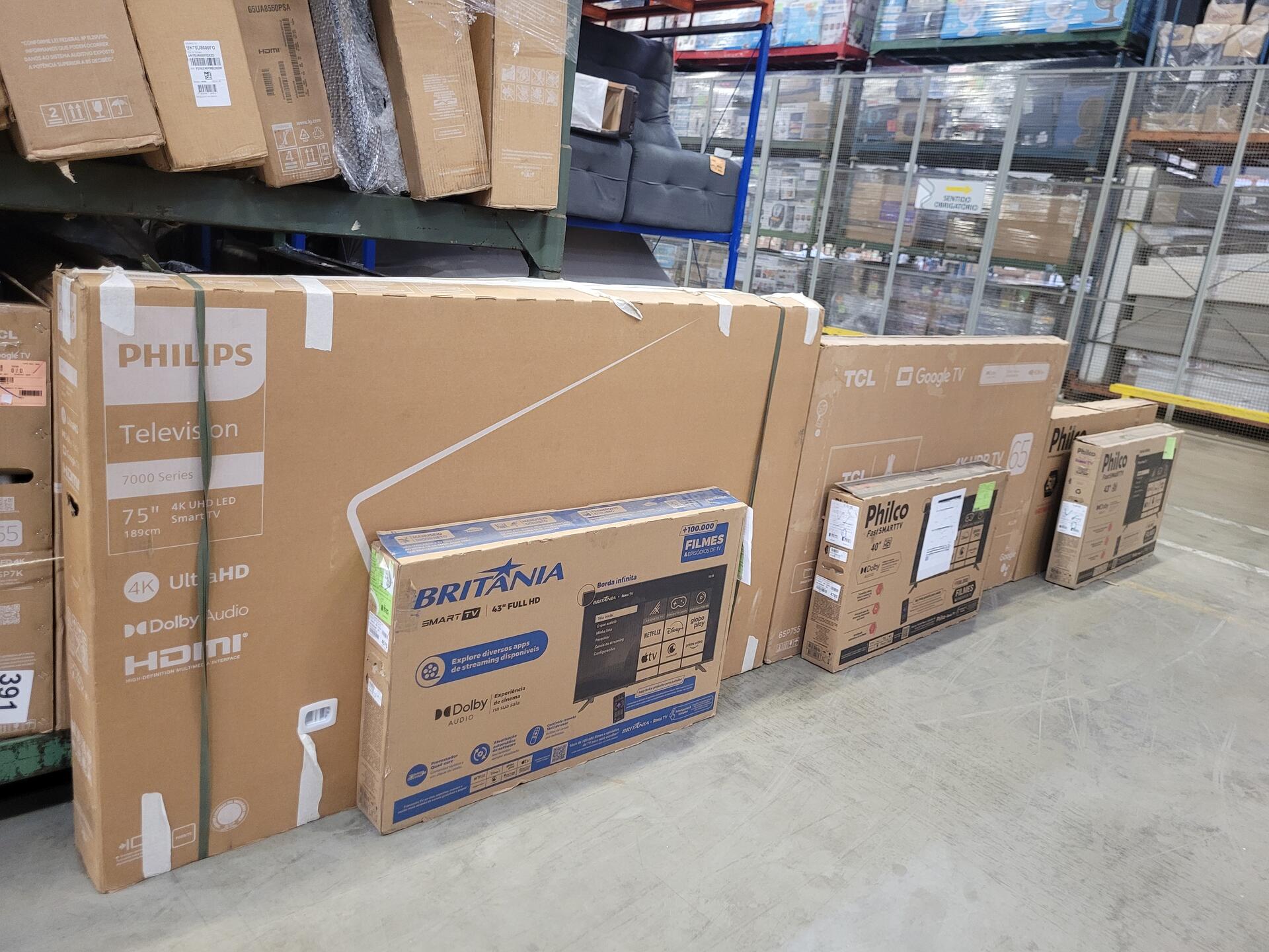 TV 43" BRITANIA ROKU BTV43VA4 FHD HDMI USB - LPN A1613504 TV 75" PHILIPS 4K 75PUG7019 GOOGLE SMART TV - LPN A1186761 TV 65" TCL 65P755 UHD 4K HDMI USB WIFI - LPN A1189580 TV 40" PHILCO FHD PTV40M9G LED HDMI USB WIFI - LPN A1603960