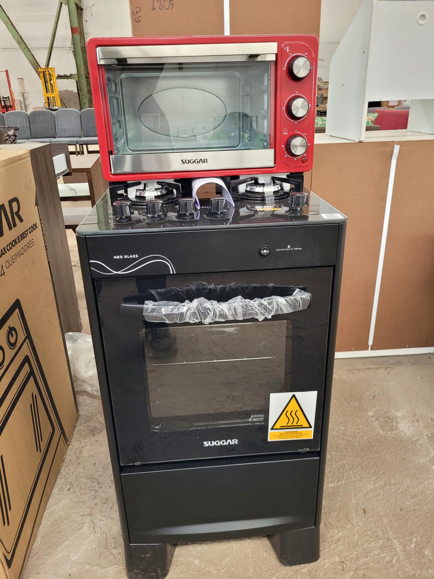 FORNO ELÉTRICO SUGGAR RMFE2312VM 220V 23L- FOGÃO SUGGAR 4 QUEIMADORES RMFGVNG410PT 127V-220V - NO ESTADO QUE SE ENCONTRA