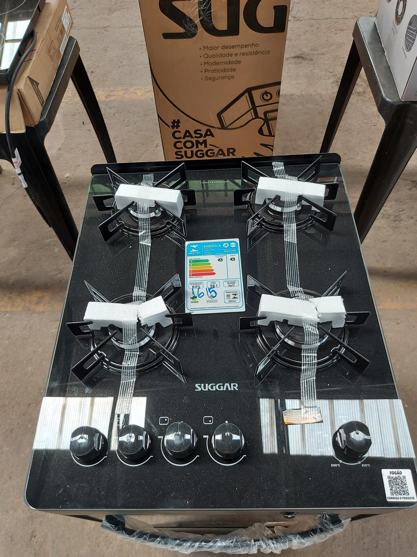 FOGÃO NEO GLASS SUGGAR 4 QUEIMADORES 127V-220V /RMFGVNG410PT - NO ESTADO QUE SE ENCONTRA
