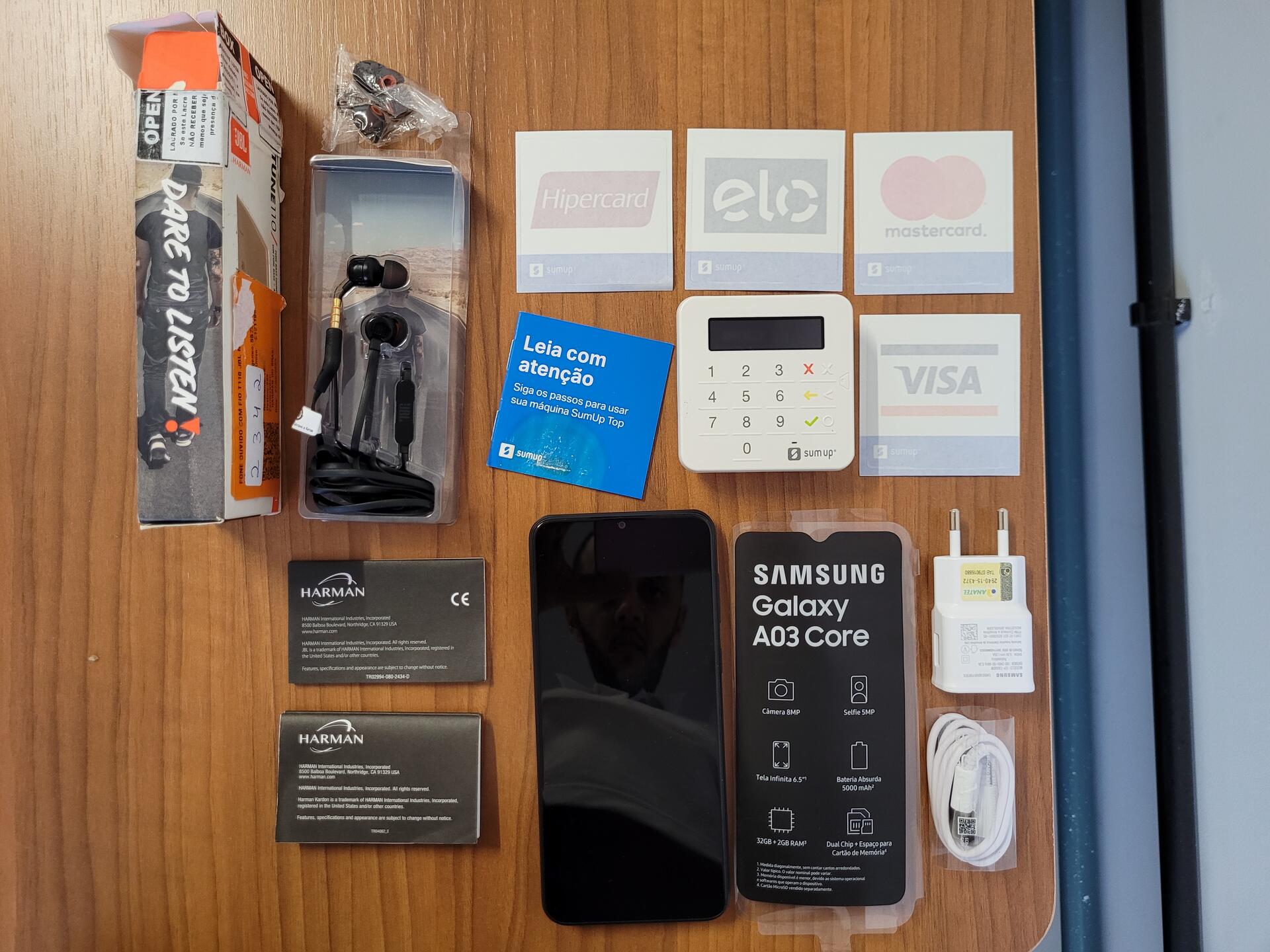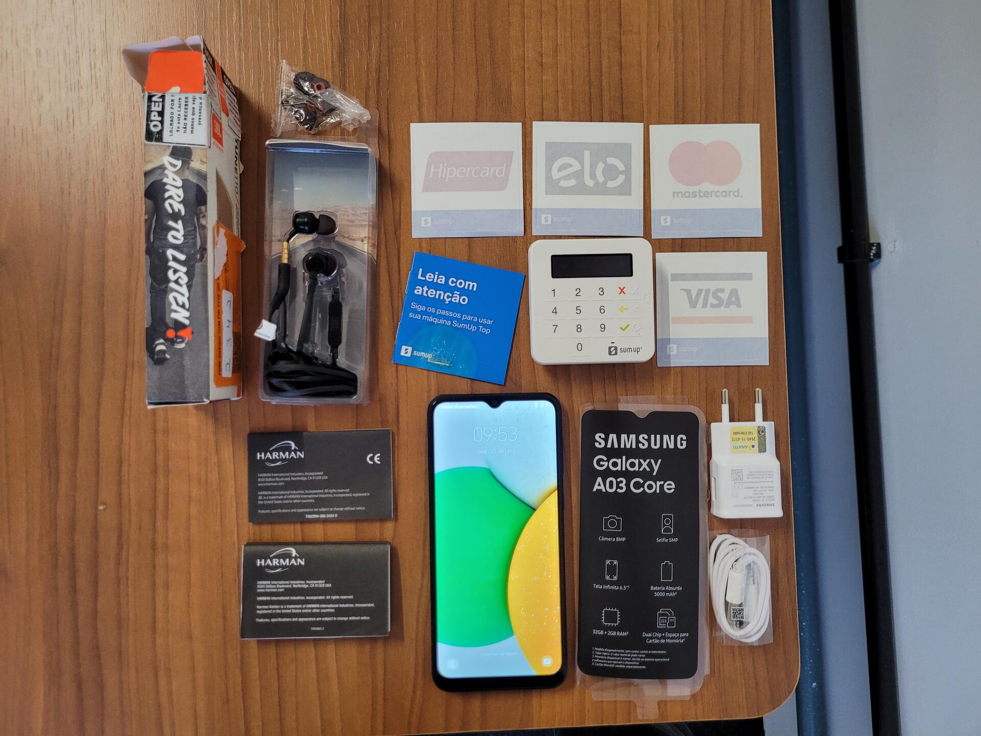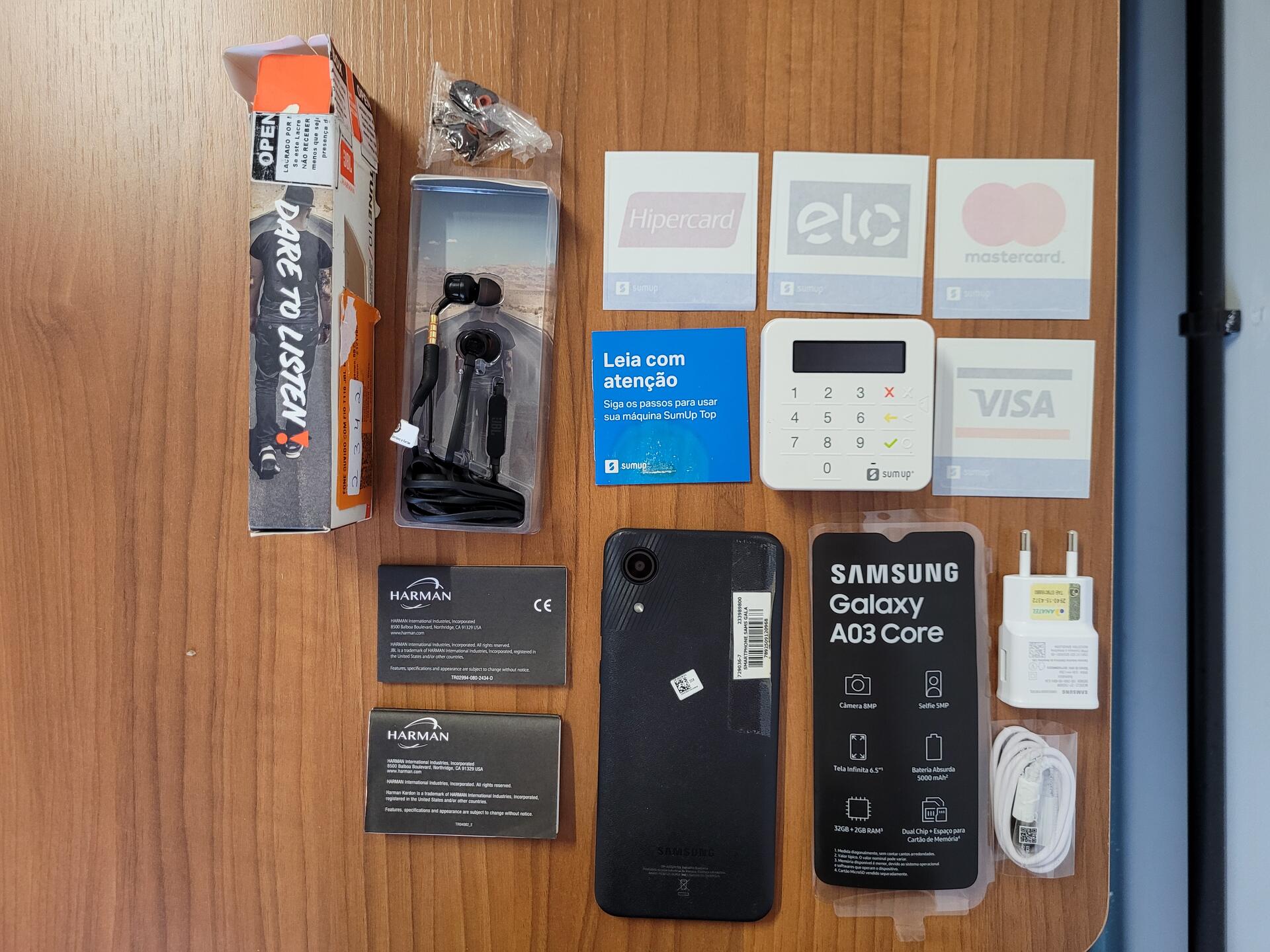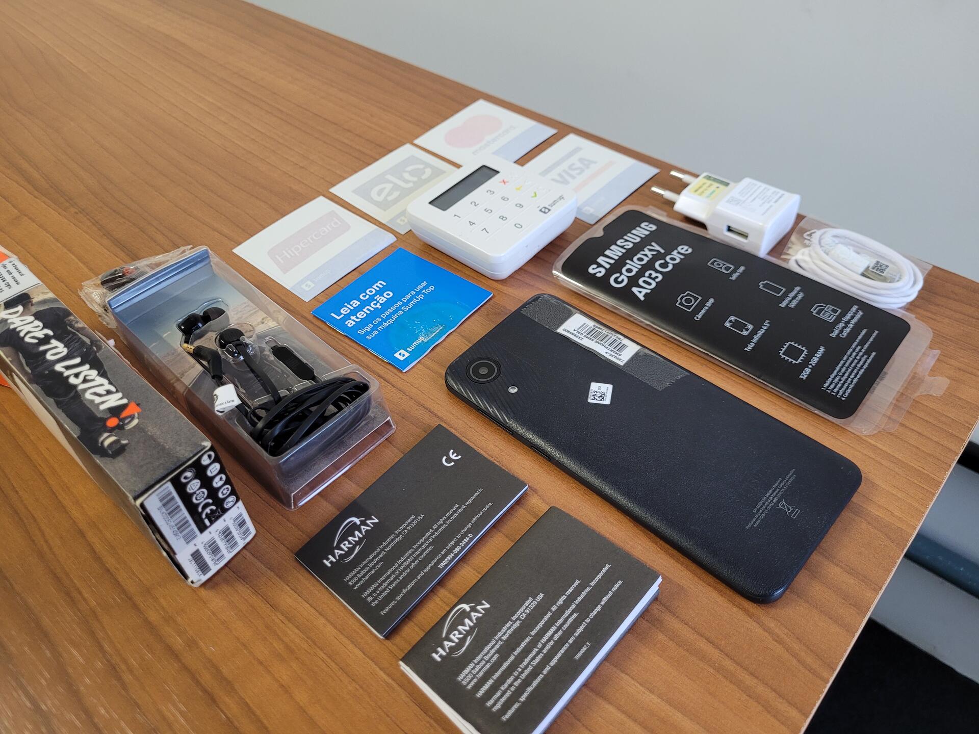1 GALAXY A03 CORE - 1 MAQ MÓVEL DE CARTÃO SUMUP - 1 JBL TUNE 110 - NO ESTADO QUE SE ENCONTRA