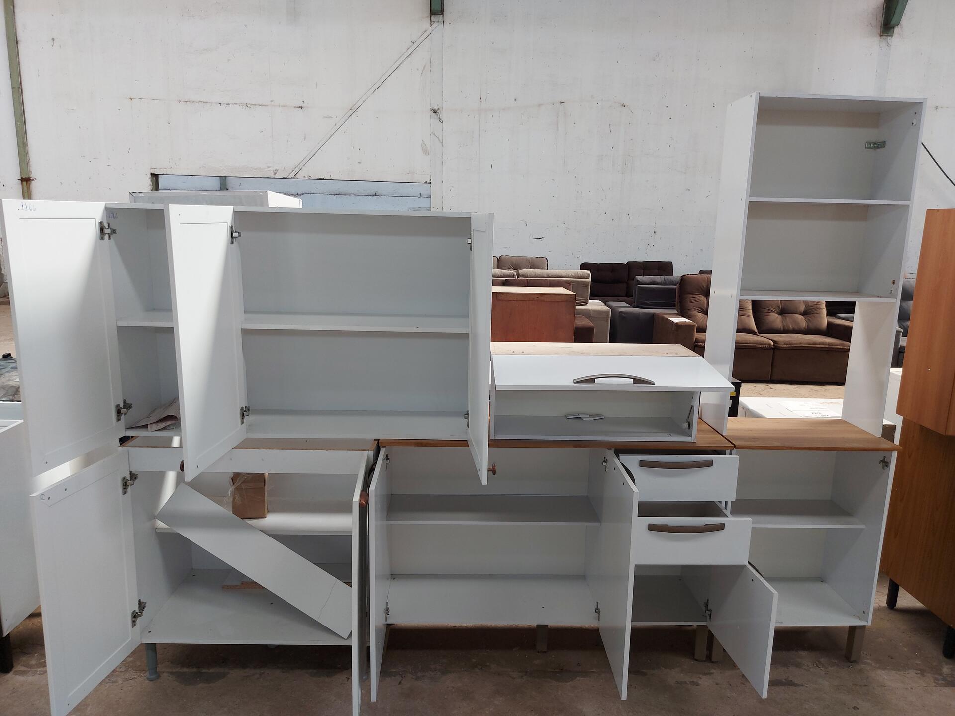 1 BALCAO COM 3 PORTAS 2 GAVETA BRANCO 1 ARMARIO BRANCO COM 2 PORTAS 1 ARMARIO DE PAREDE COM 1 PORTA 1 ARMARIO DE PAREDE BRANCO COM 3 PORTAS 1 BACAO BRANCO COM 2 PORTA - NO ESTADO QUE SE ENCONTRA