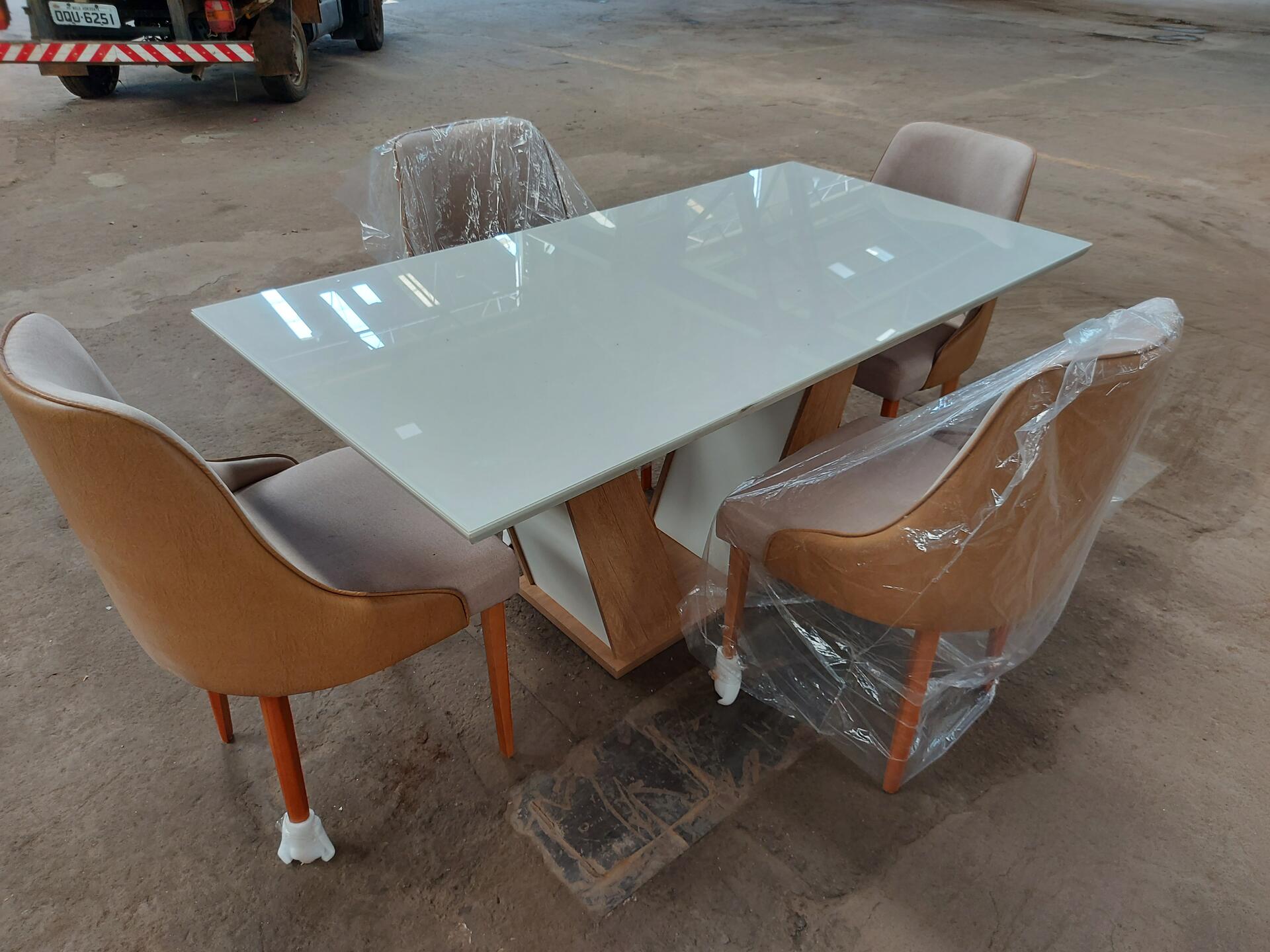 1 MESA DE JANTAR BRANCA COM 4 CADEIRAS - NO ESTADO QUE SE ENCONTRA