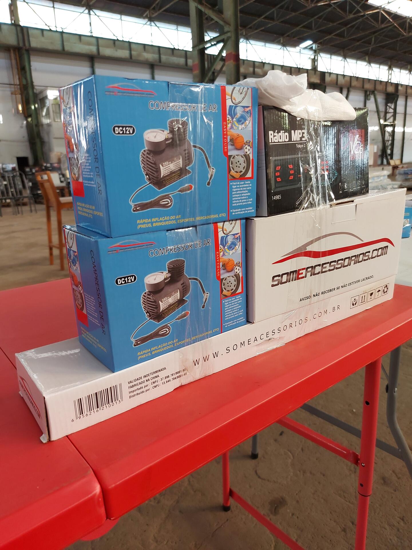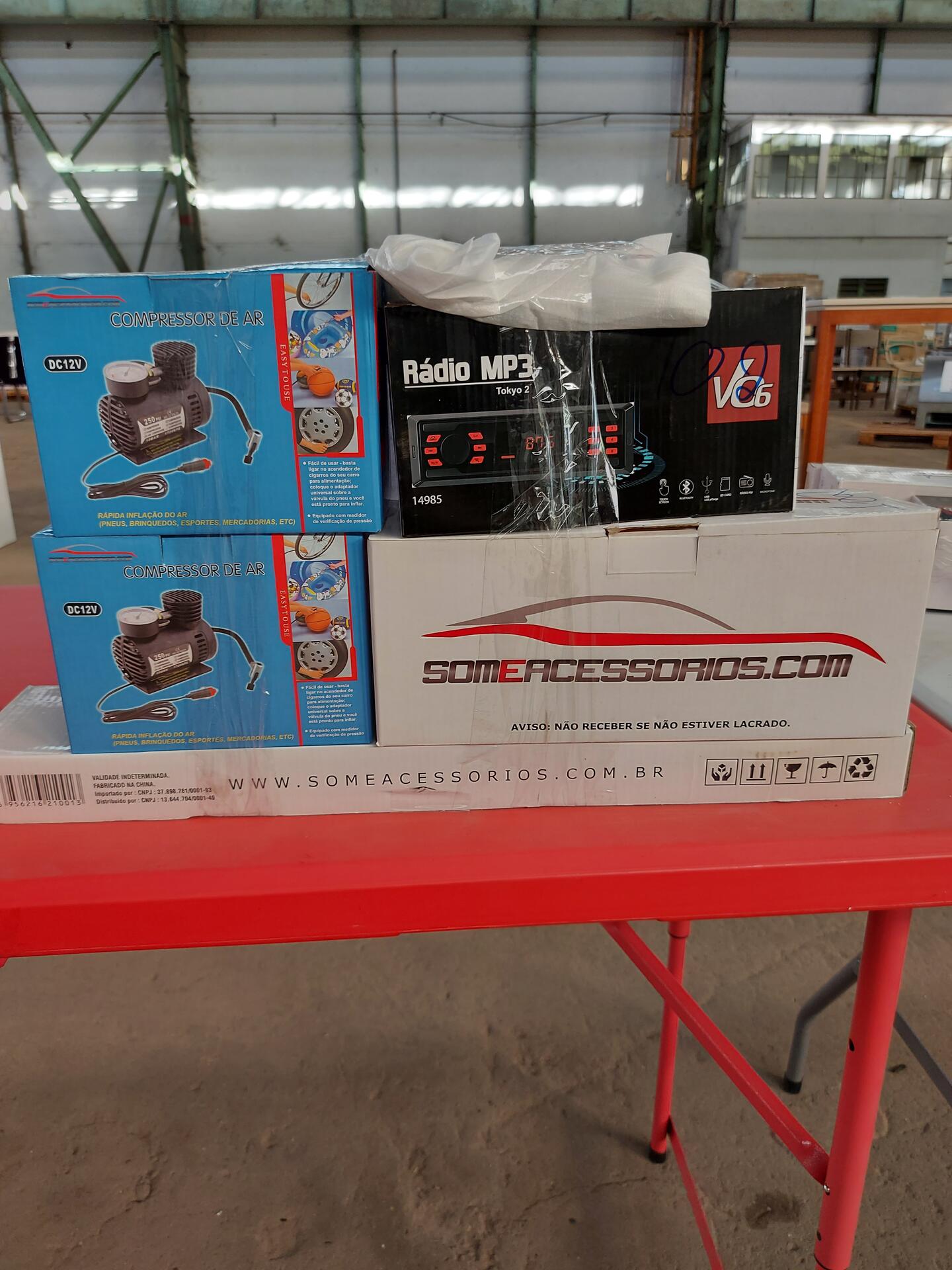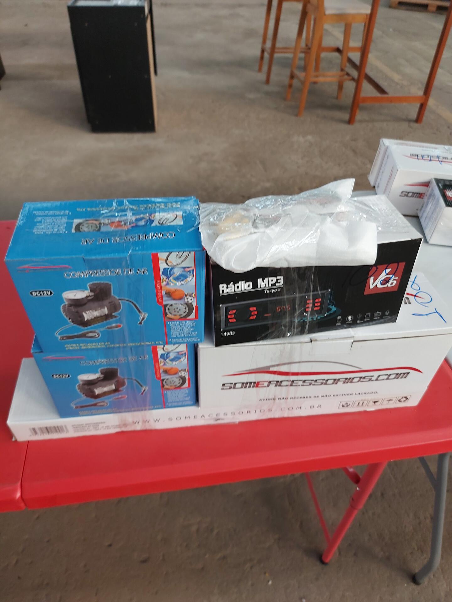 2 COMPRESSOR DE AR DC12V AUTOMOTIVO 1 RADIO MP3 TOKYO 2 VO6 1 TRANCA DE VOLANTE 1 ASPIRADOR DE PÒ AUTOMOTIVO 1 CAMERA DE RE - NO ESTADO QUE SE ENCONTRA