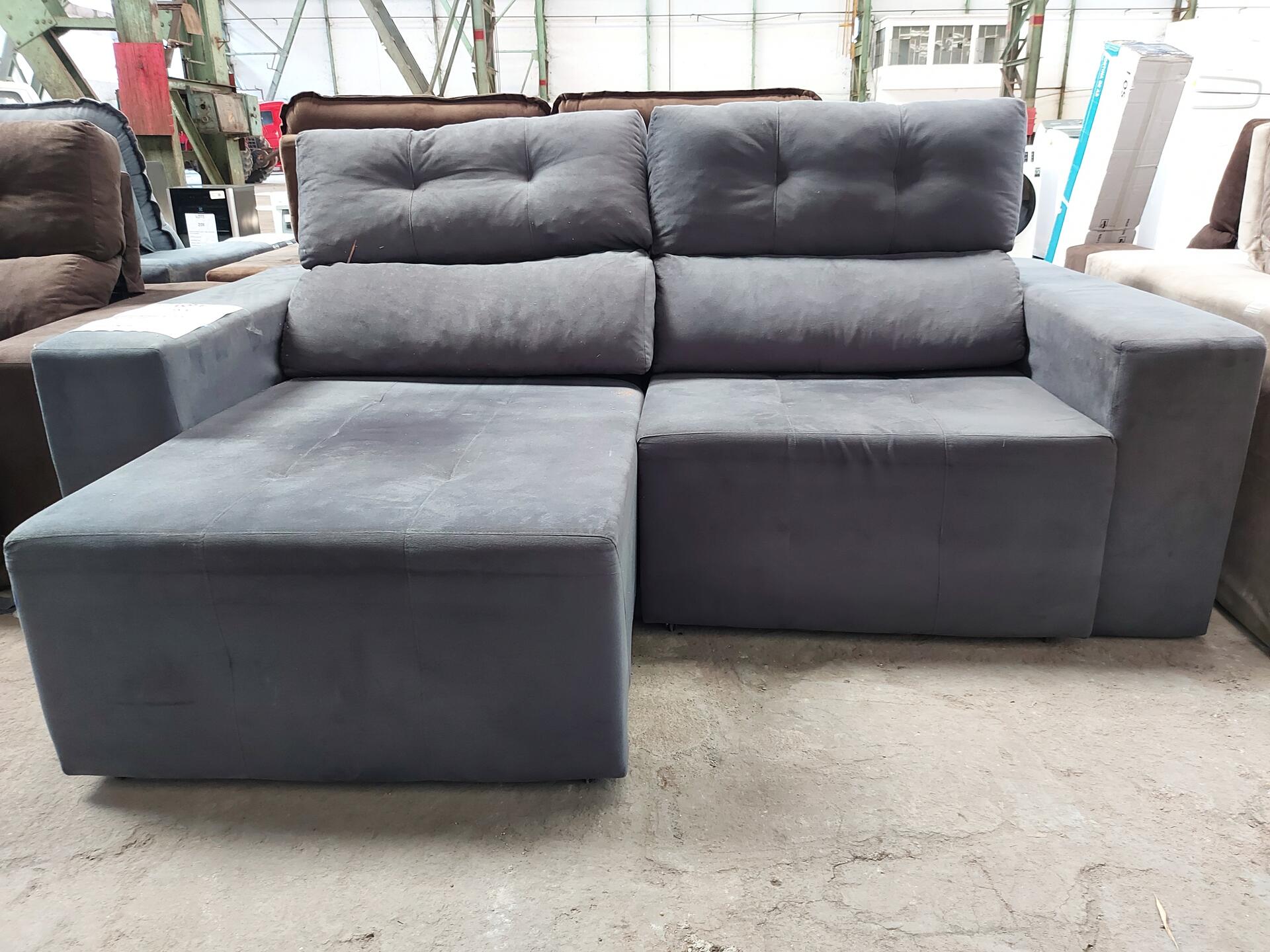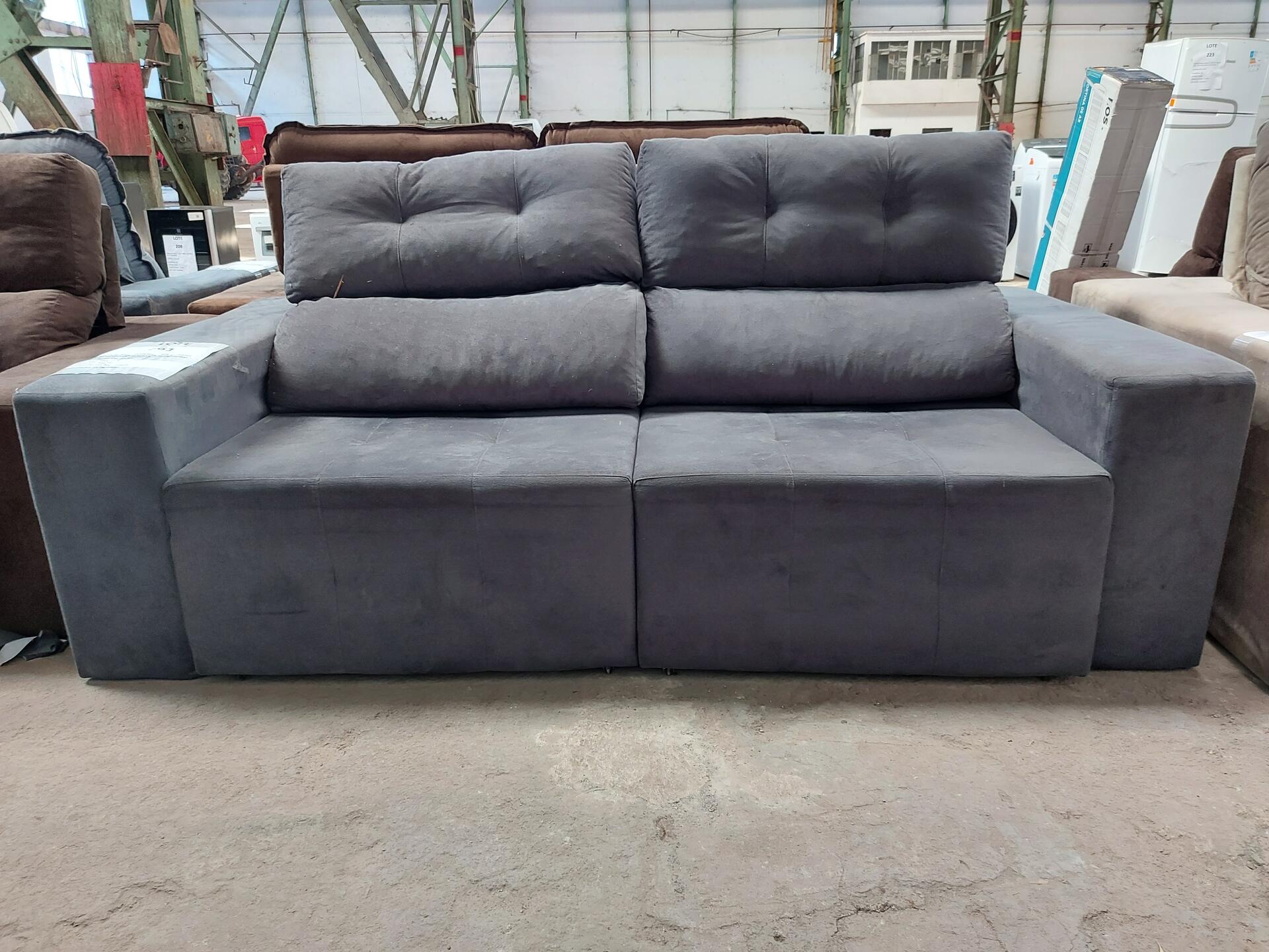 1 SOFA RETRATIL RECLINAVEL CINZA 3 LUGARES 2,20 METROS (NO ESTADO QUE SE ENCONTRA)