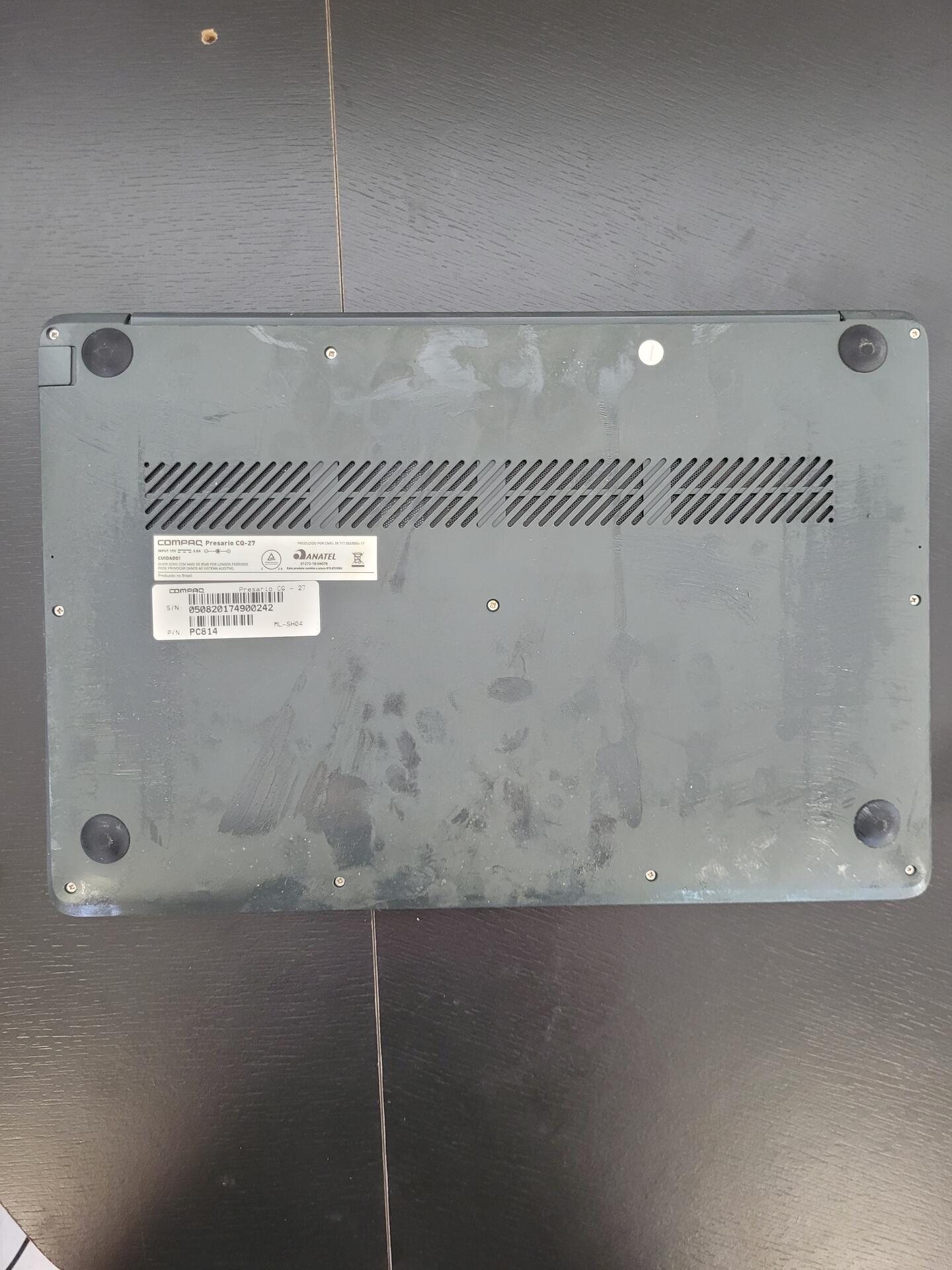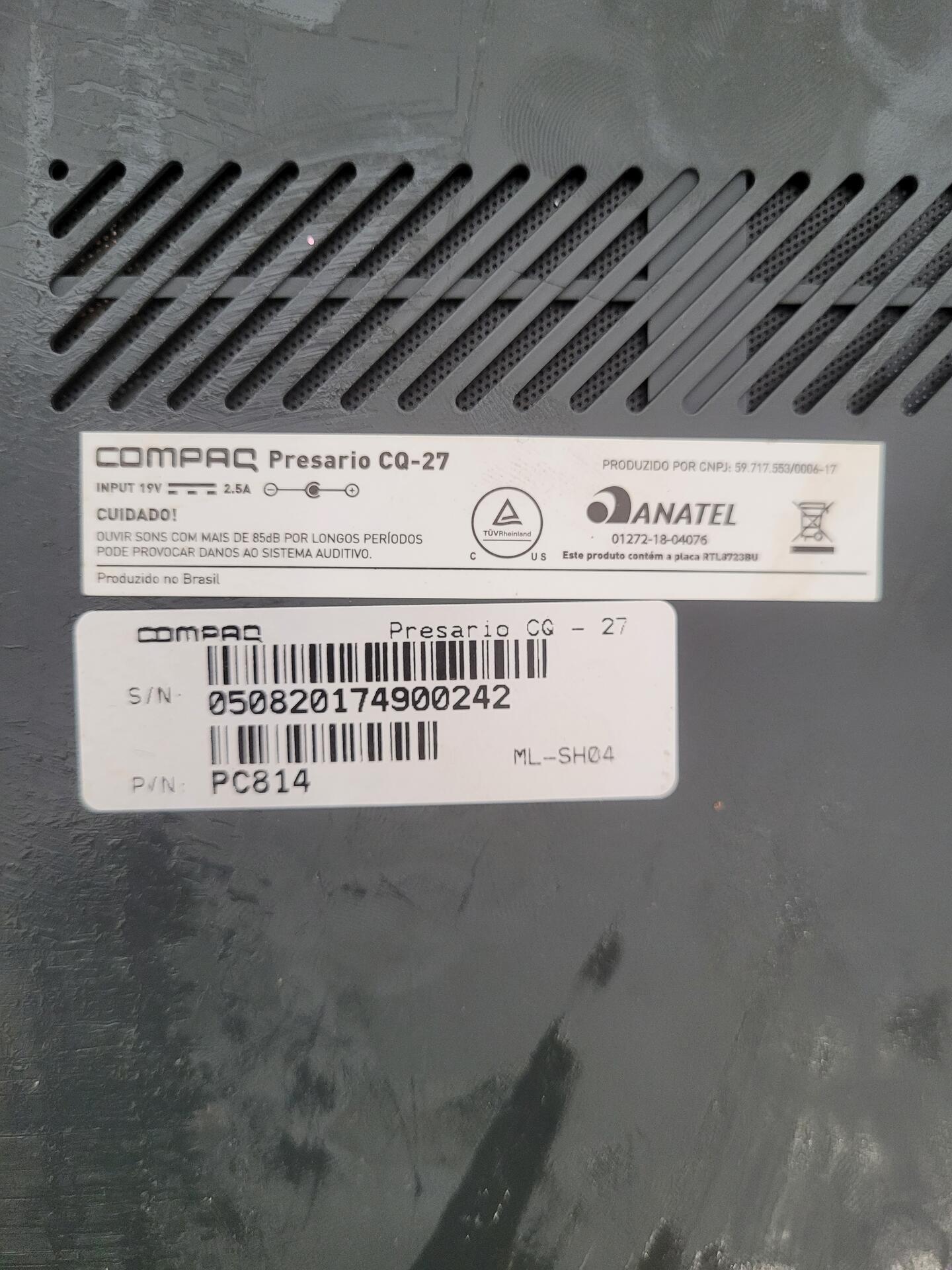 NOTEBOOK COMPAQ PRESARIO CQ-27 CINZA - NO ESTADO QUE SE ENCONTRA TELA 14” HD Memória soldada de 4GB INTEL GRAPHICS 5500 GT2 SISTEMA OPERACIONAL LINUX 64BITS 250 GB DE ARMAZENAMENTO