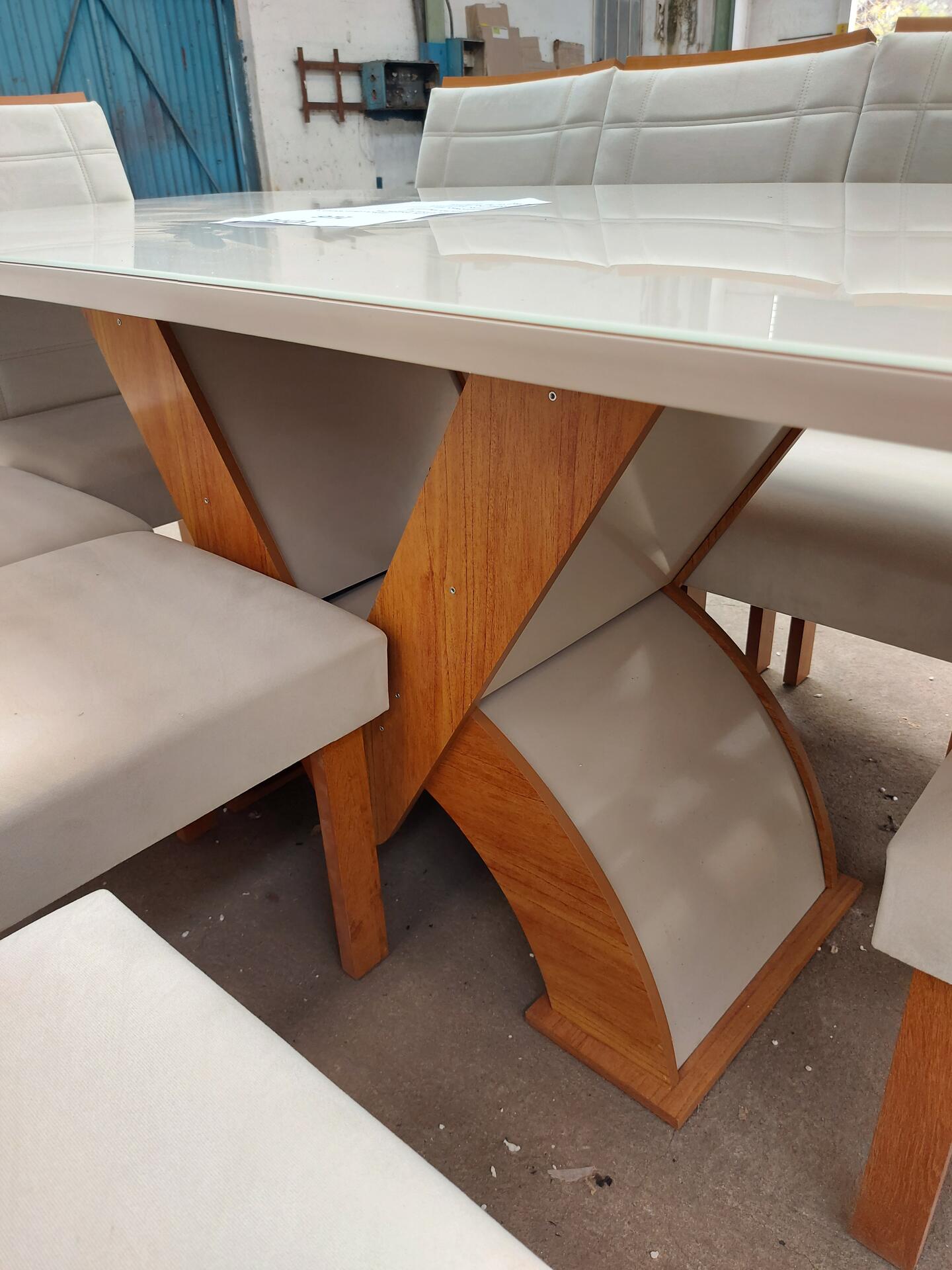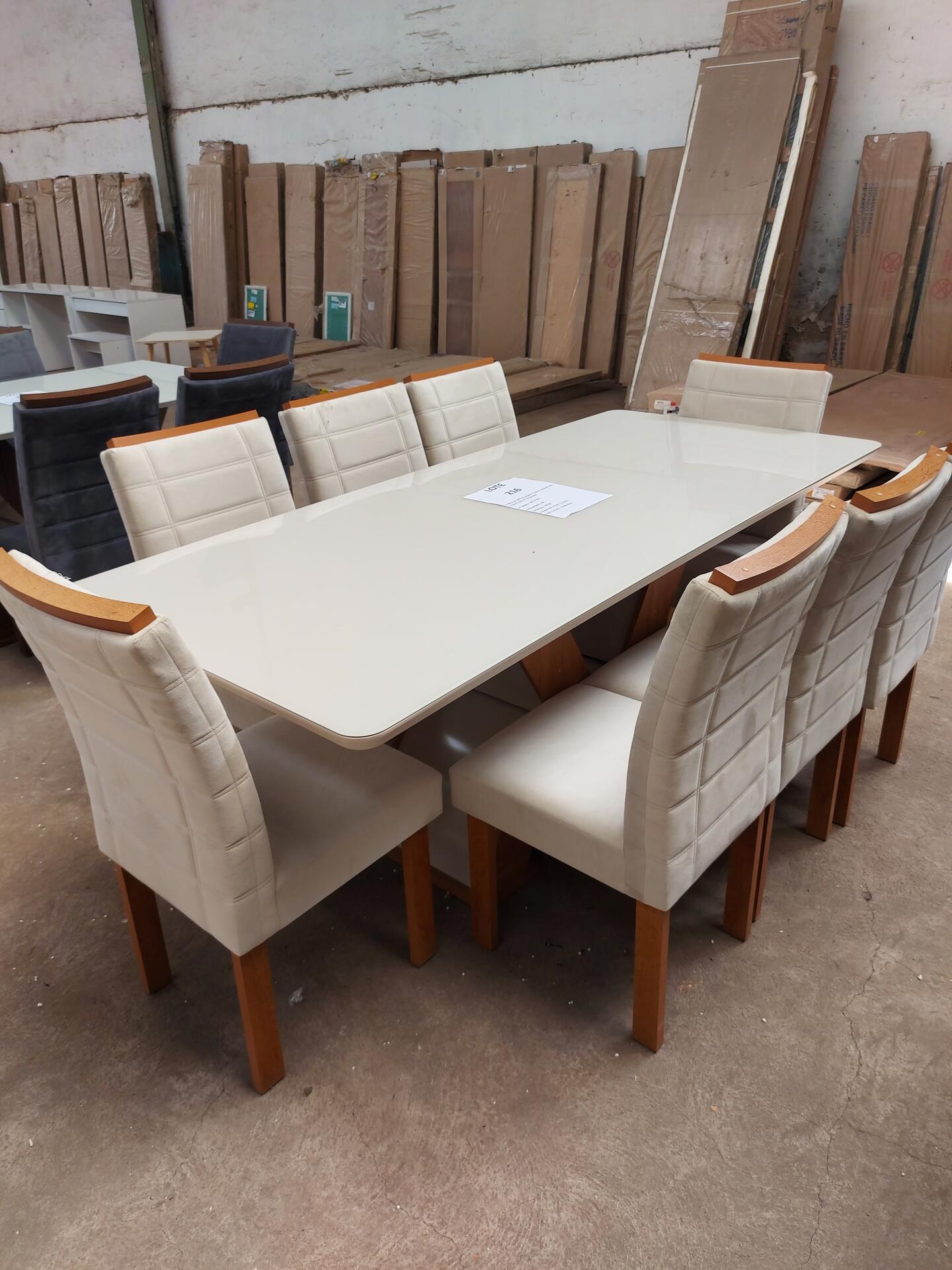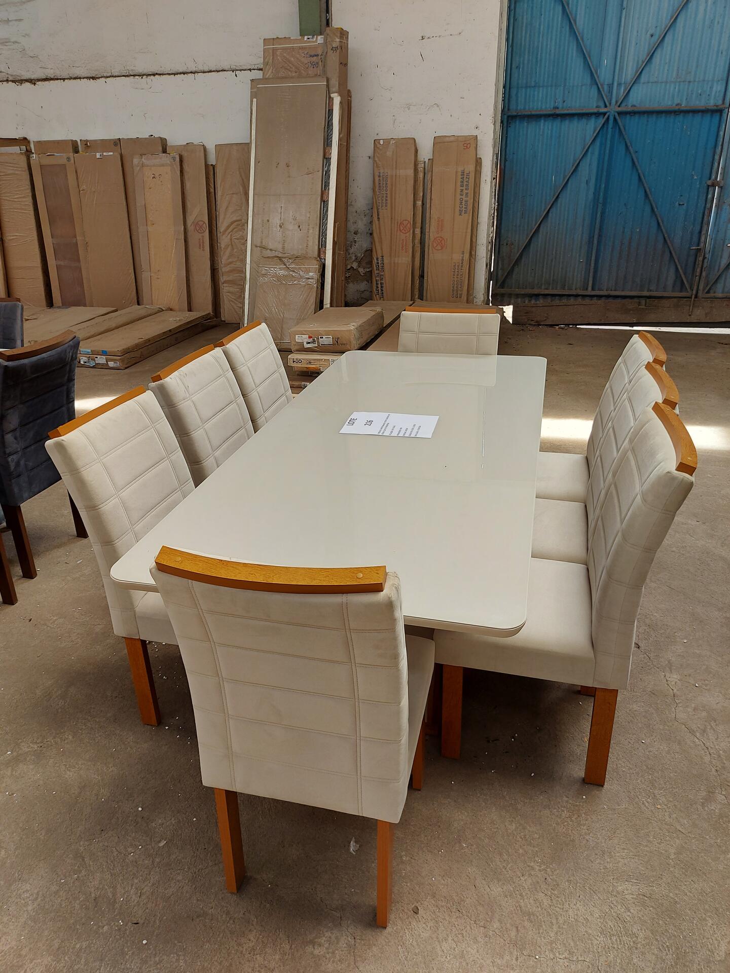 1 MESA DE JANTAR BRANCA COM 8 CADEIRAS NO ESTADO QUE SE ENCONTRA