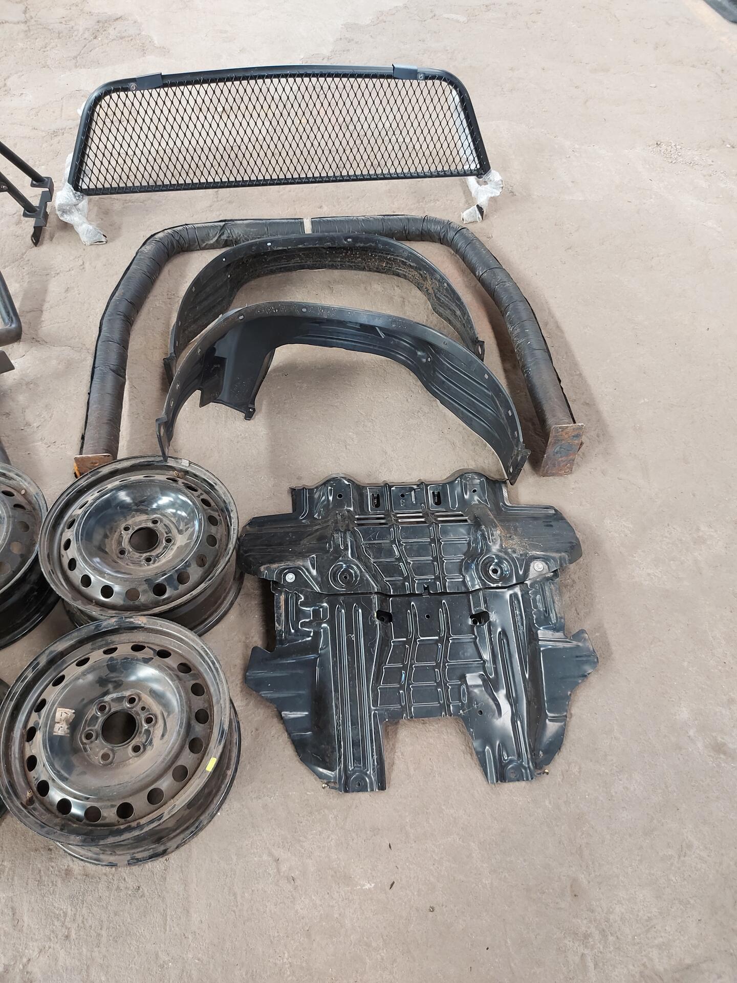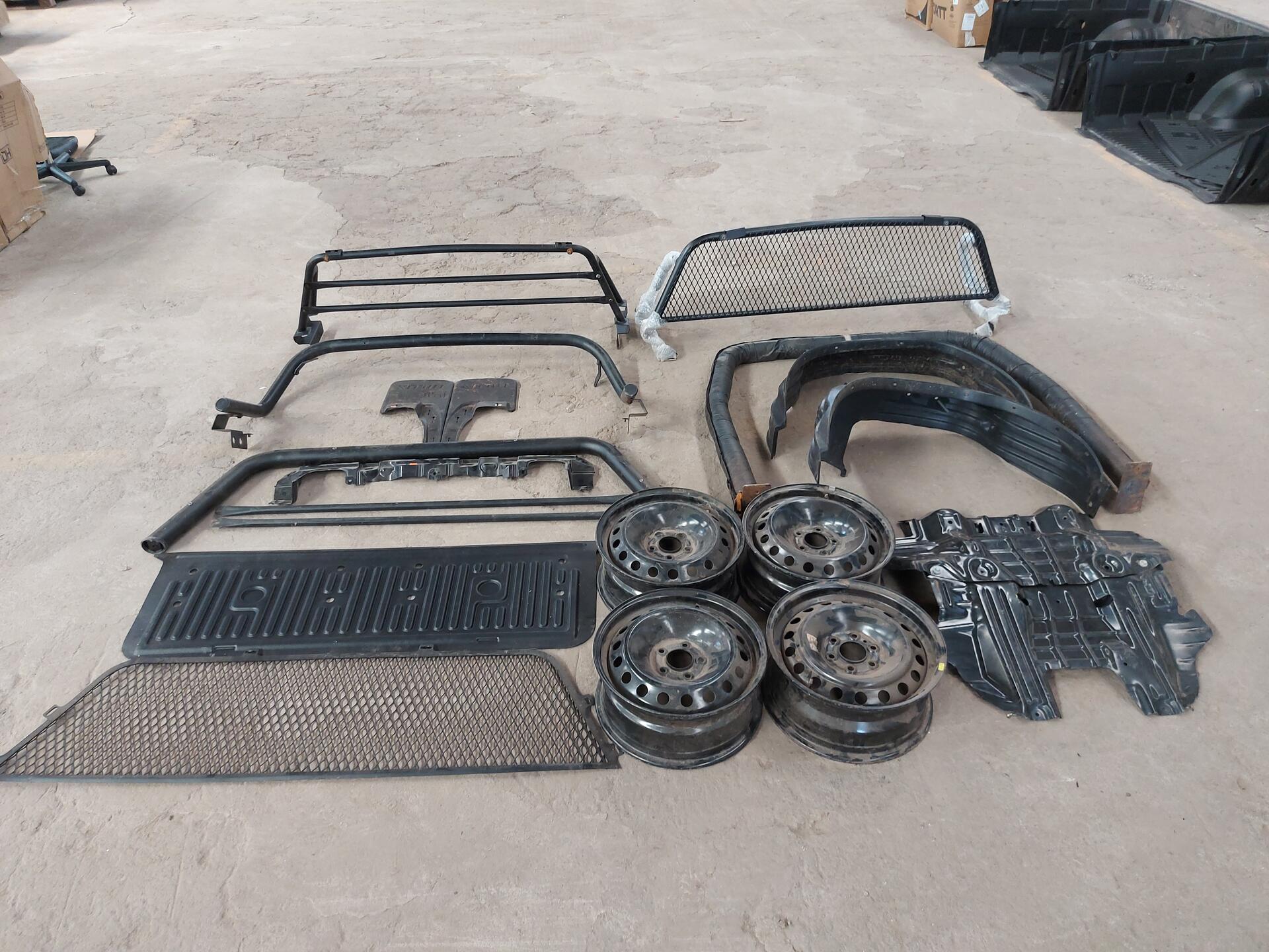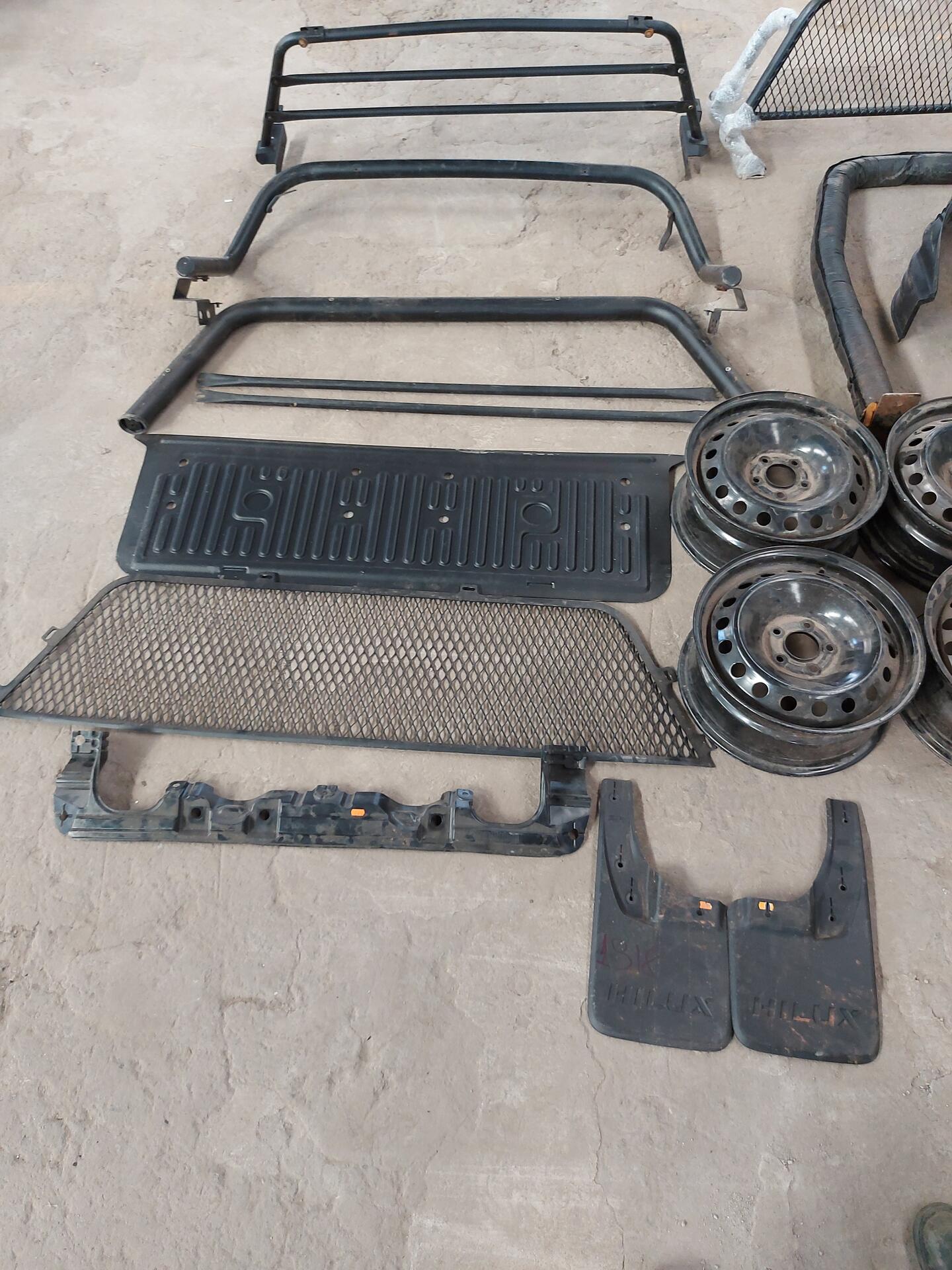 1JOGO DE RODA DE FERRO 5 SANTO ANTONIO 1 FORRO TAMPA TRAS MITSUBISHI 1GRADE PARA SANTO ANTONIO 1KIT PARA BARRO TRAS 1 PEITO DE AÇO PRETETOR DE CATER 2 BARRA DE FERRO DE PROTEÇÃO PARA SANTO ANTONIO 1DEFLETOR PARA-CHOQUE HILUX 1PAR DE LAMEIRO TRAS HILUX