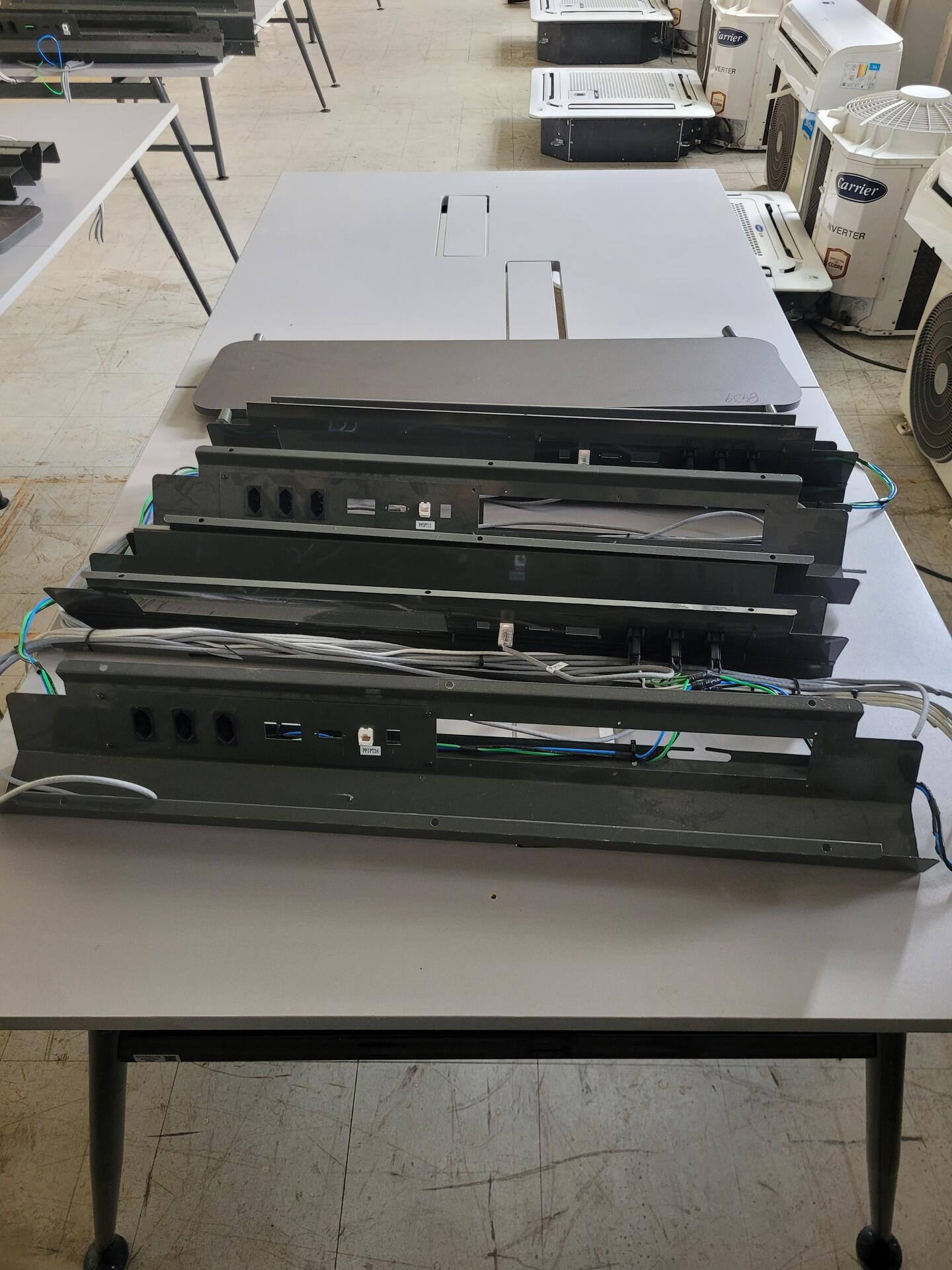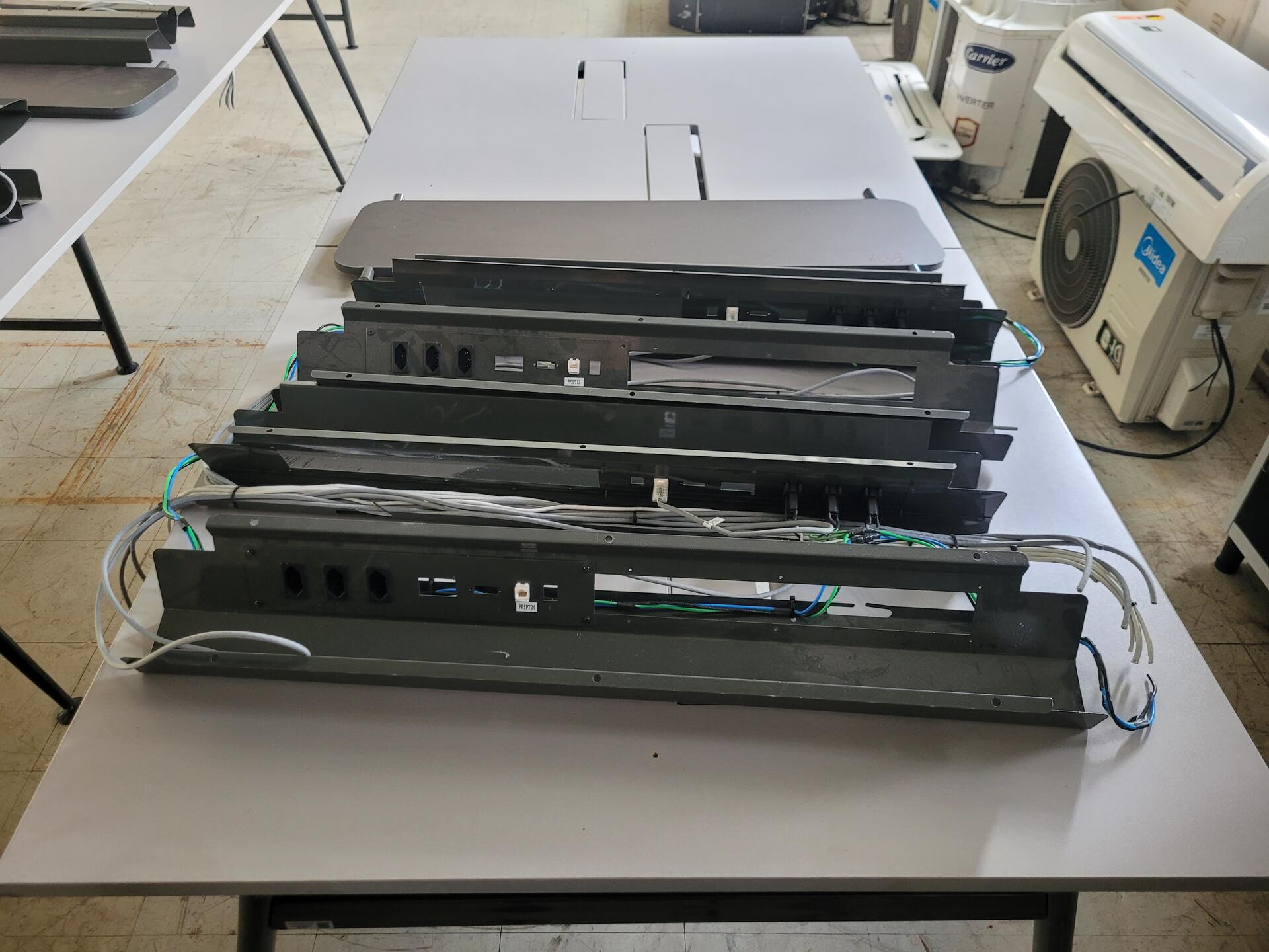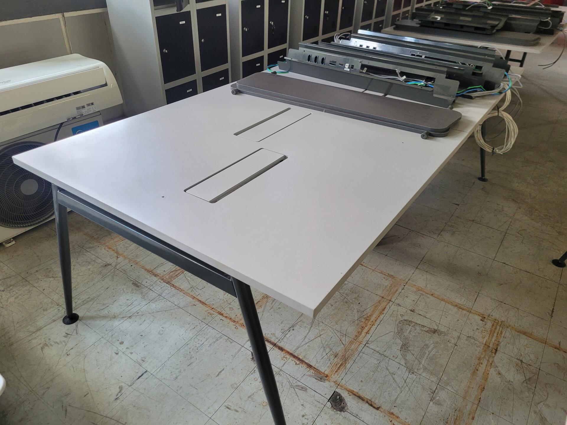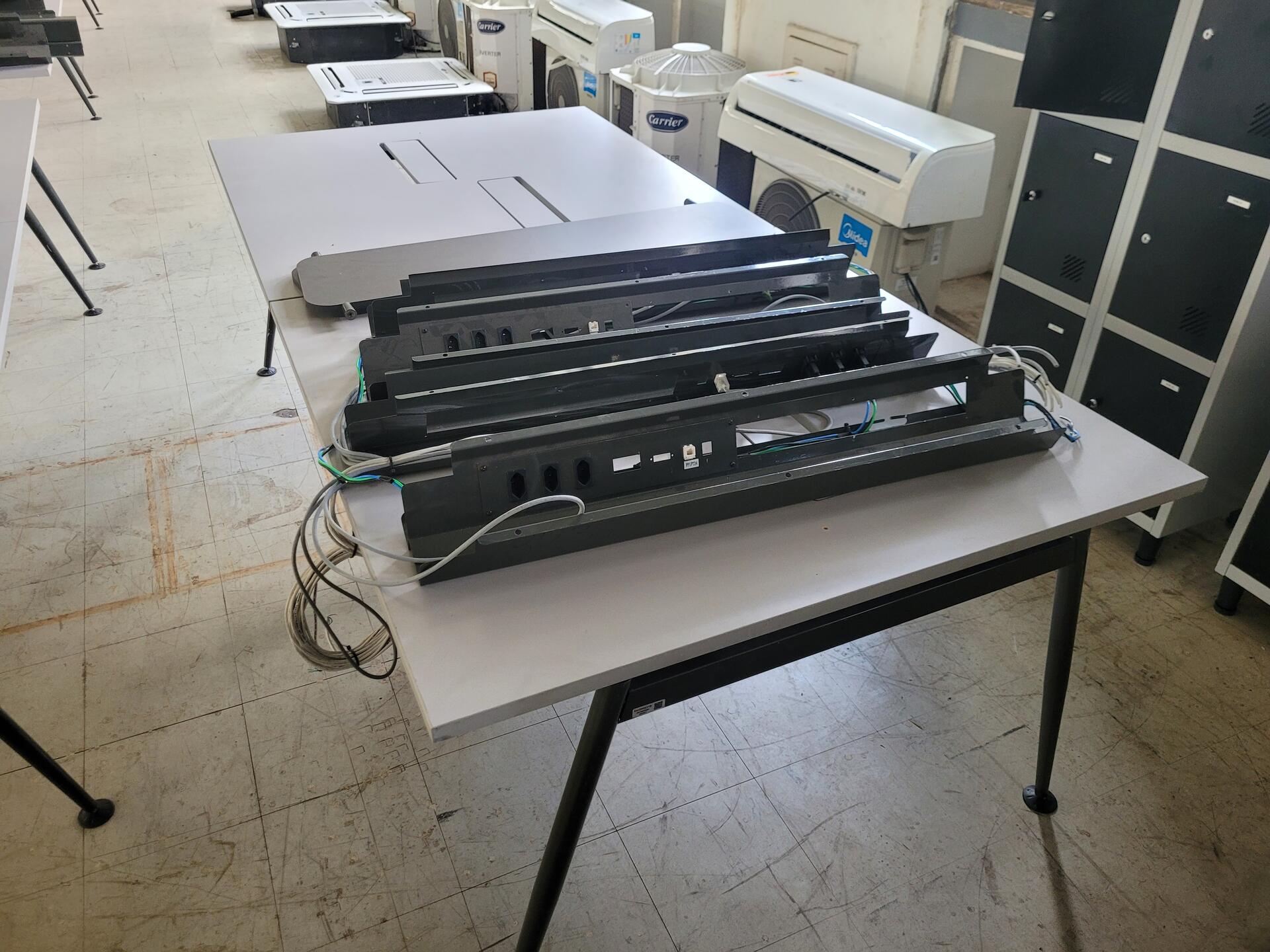 MESA ESTAÇÃO DE TRABALHO COM ABERTURA PARA TOMADAS PREMIUM EM AÇO E MDF REVESTIDO