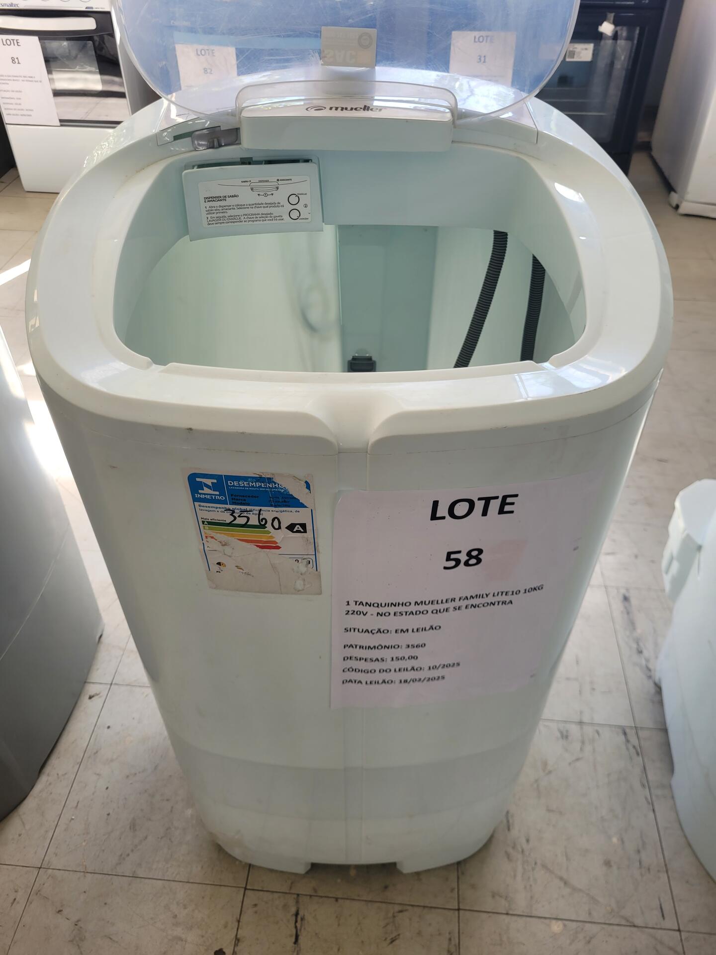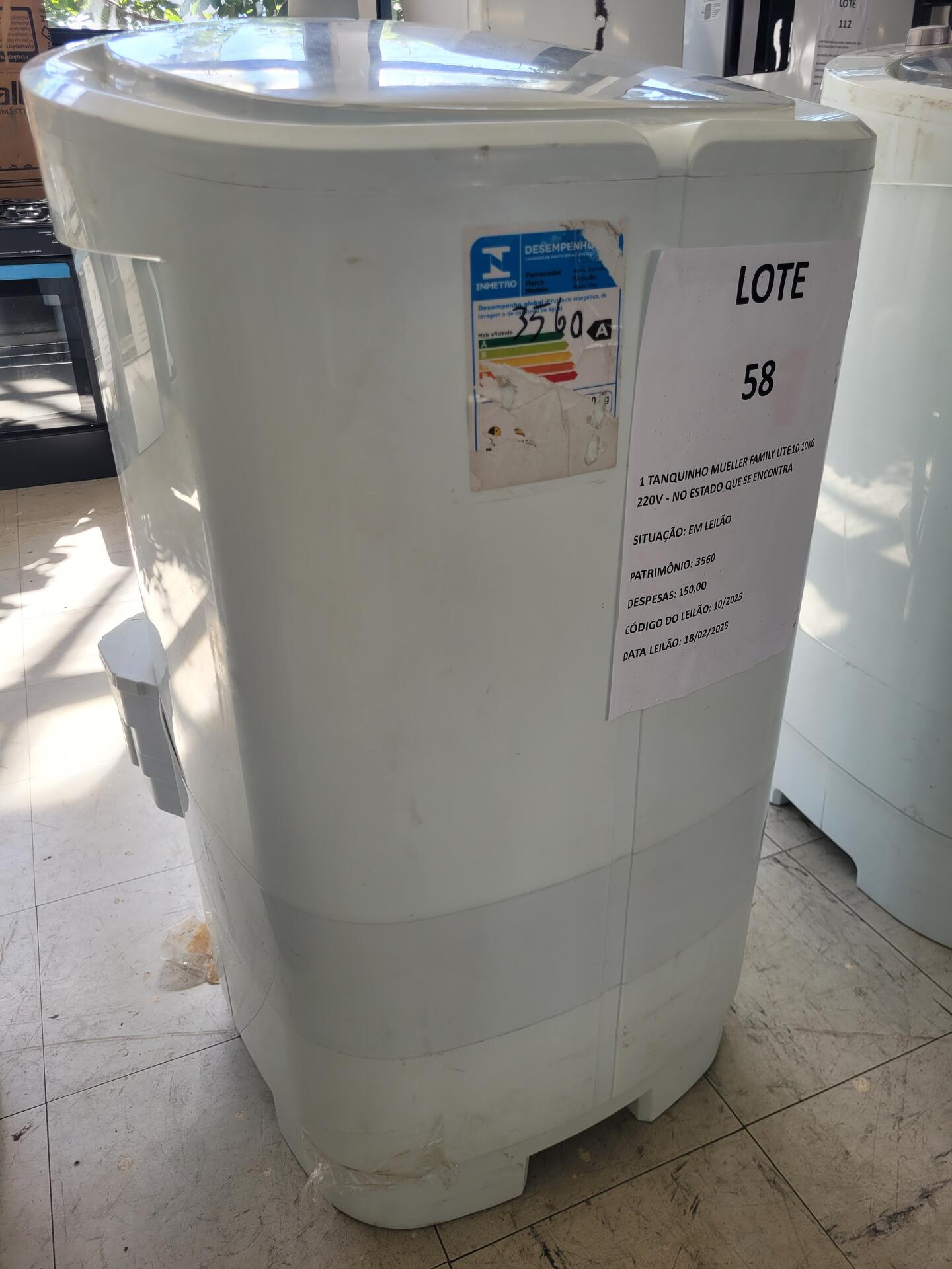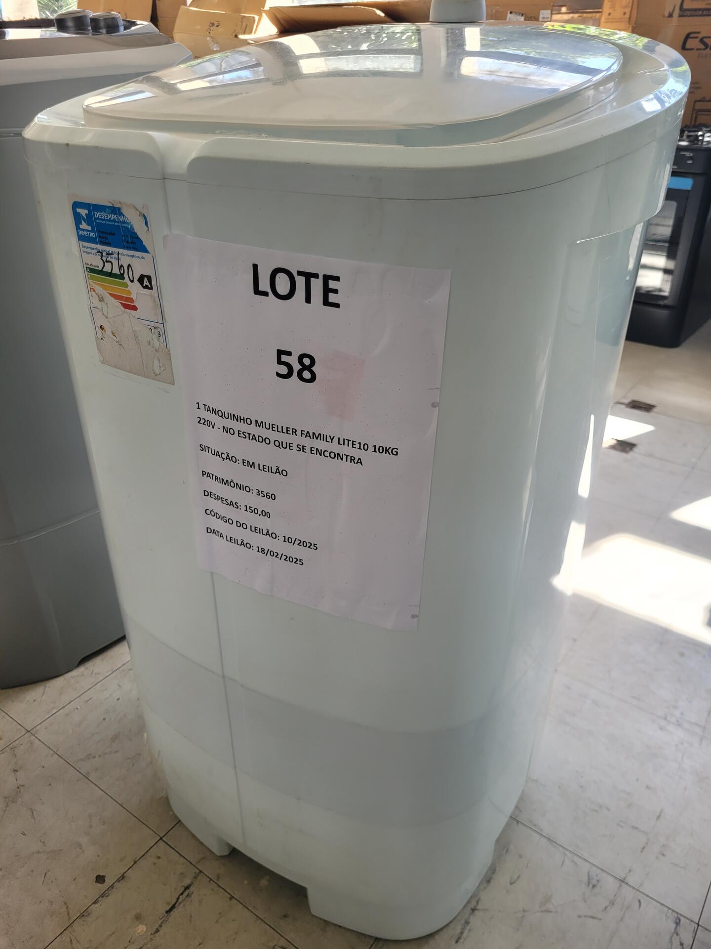 1 TANQUINHO MUELLER FAMILY LITE10 10KG 220V - NO ESTADO QUE SE ENCONTRA