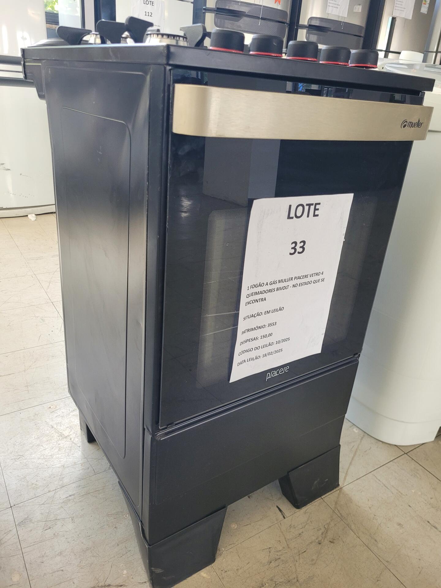 1 FOGÃO A GÁS MULLER PIACERE VETRO 4 QUEIMADORES BIVOLT - NO ESTADO QUE SE ENCONTRA