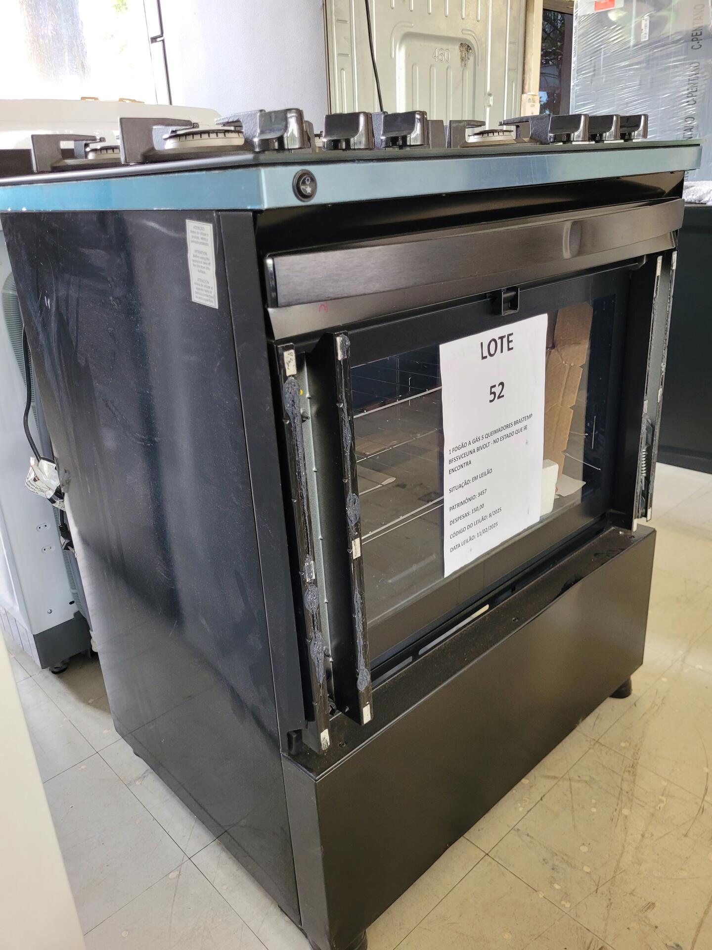 1 FOGÃO A GÁS 5 QUEIMADORES BRASTEMP BFS5VCEUNA BIVOLT - NO ESTADO QUE SE ENCONTRA