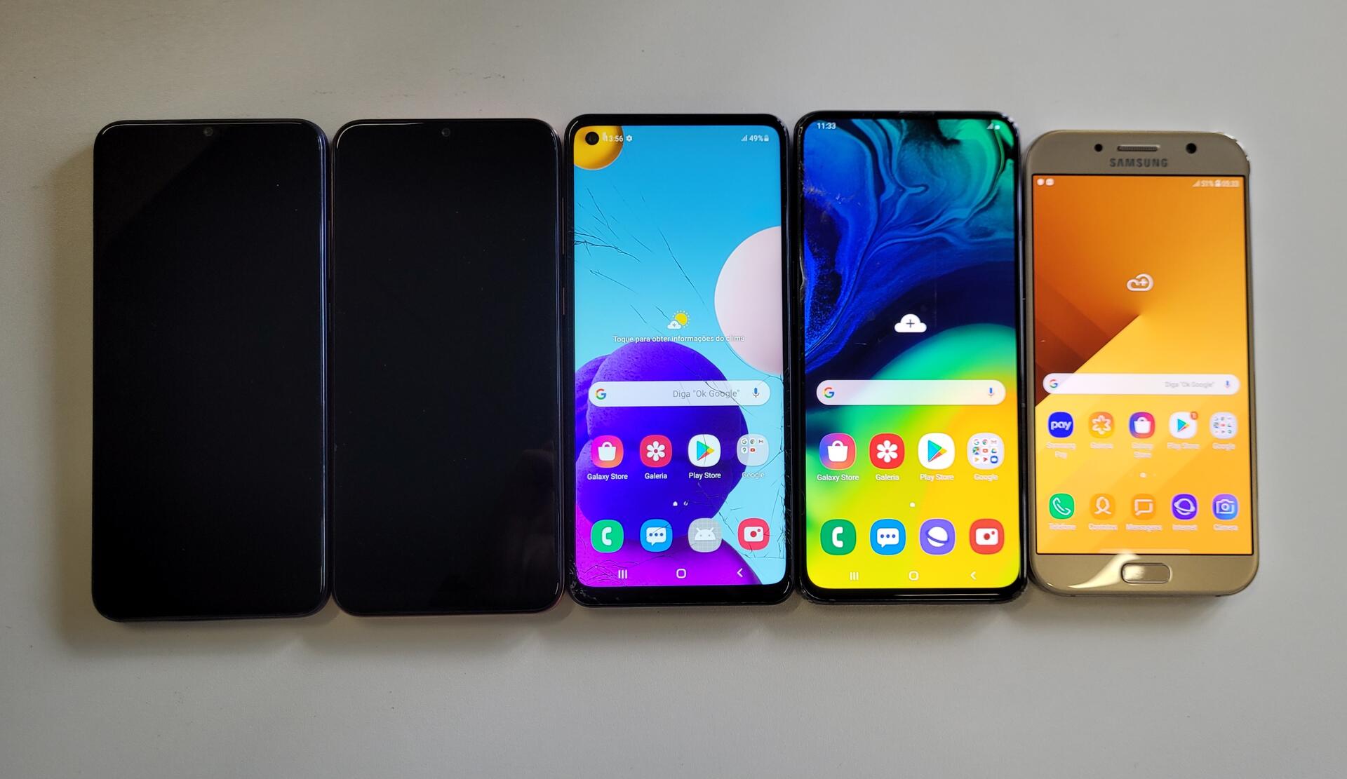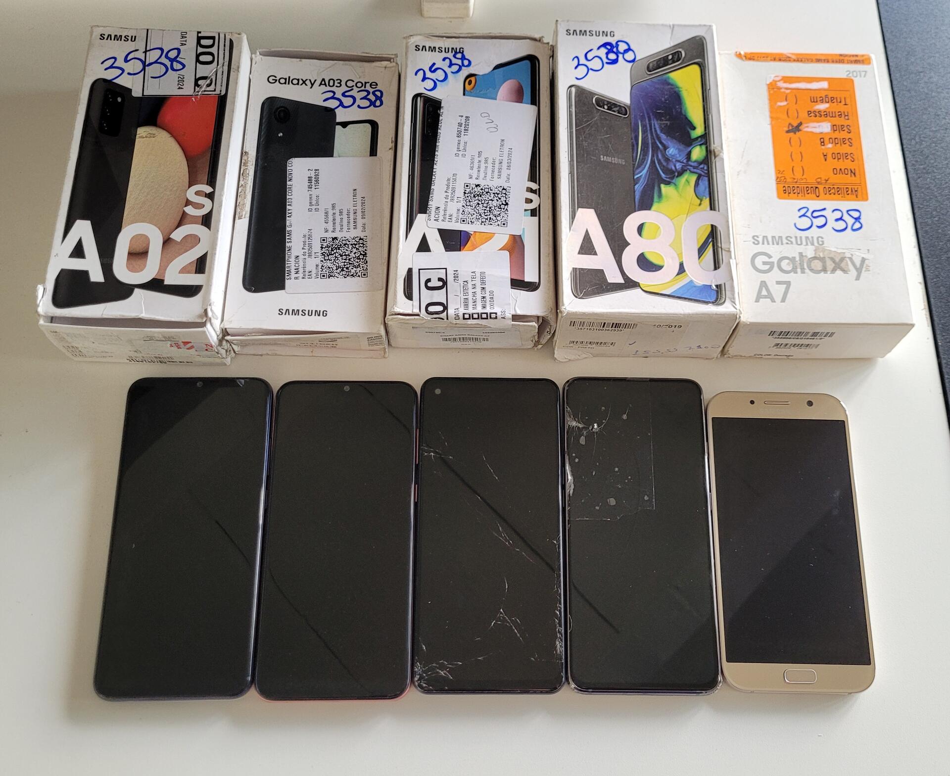 1-SAMSUNG GALAXY A03 CORE: NO ESTADO EM QUE SE ENCONTRA 1-SAMSUNG GALAXY A02S: NO ESTADO EM QUE SE ENCONTRA 1-SAMSUNG GALAXY A07: FUNCIONANDO 1-SAMSUNG GALAXY A21S: FUNCIONANDO TELA AVARIADA 1-SAMSUNG GALAXY A80: FUNCIONANDO TELA AVARIADA