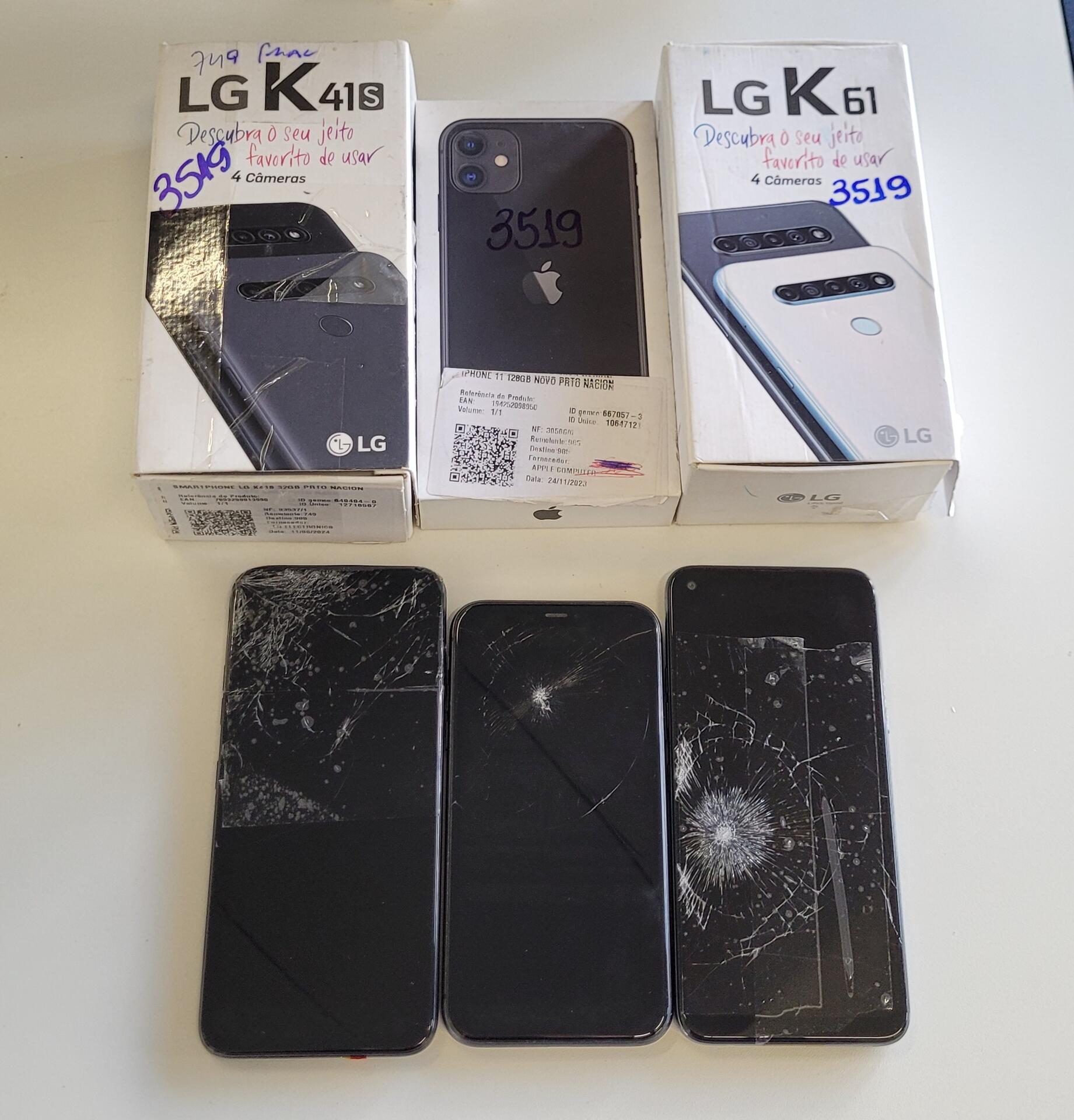 SMARTPHONE LG K41S: FUNCIONANDO TELA AVARIADA ACOMPANHA CARREGADOR E FONE DE OUVIDO SMARTPHONE LG K61 : FUNCIONANDO TELA AVARIADA ACOMPANHA CARREGADOR E FONE DE OUVIDO IPHONE 11: NO ESTADO EM QUE SE ENCONTRA