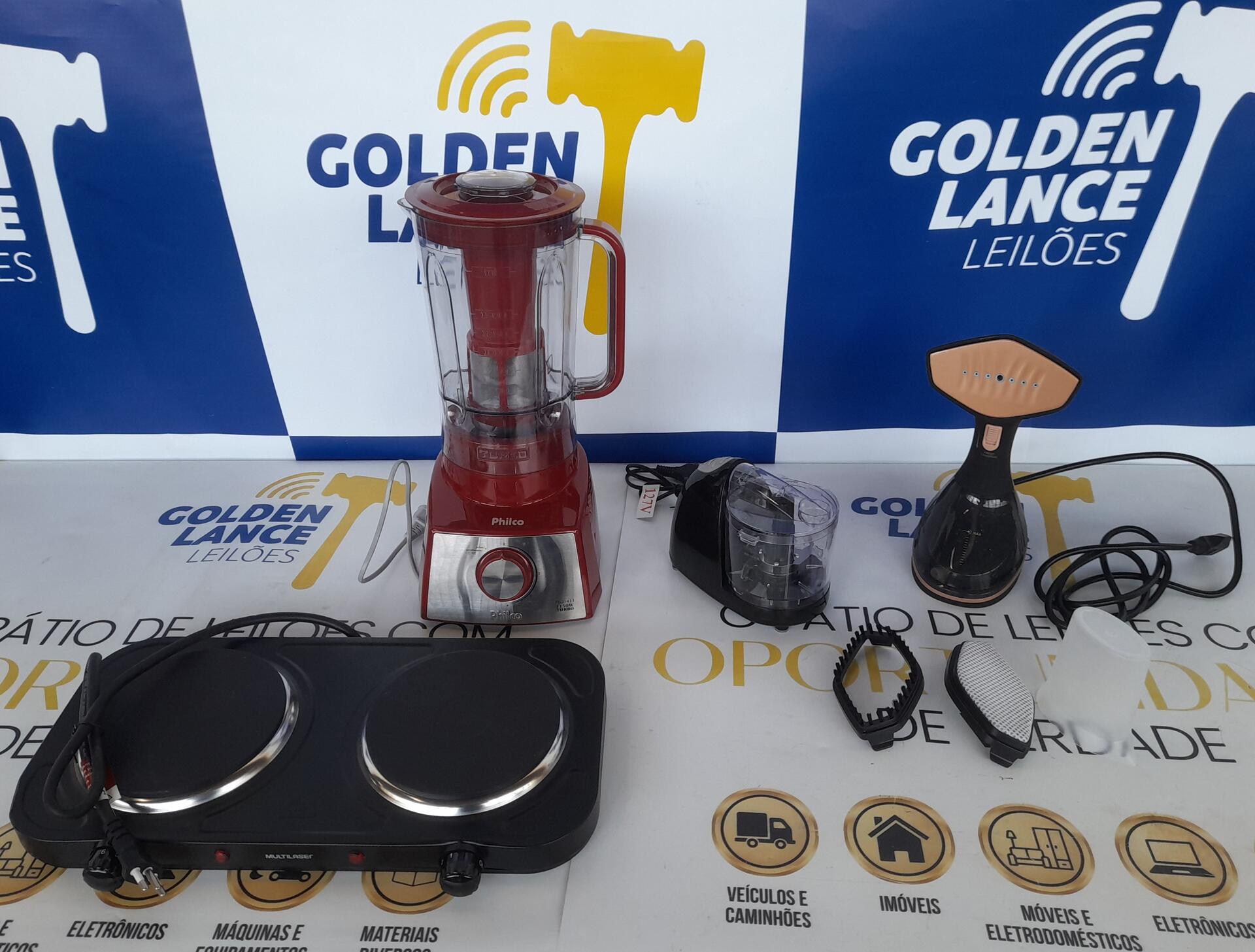 1 VAPORIZADOR DIGITAL BLACK DECKER 127V 1 FOGÃO ELÉTRICO EASY COOK 2 QUEIMADORES MULTILASER 1 MINI PROCESSADOR PRATIC LENOOX 127V 1 LIQUIDIFICADOR PHILCO 2,7L 220V - NO ESTADO QUE SE ENCONTRA
