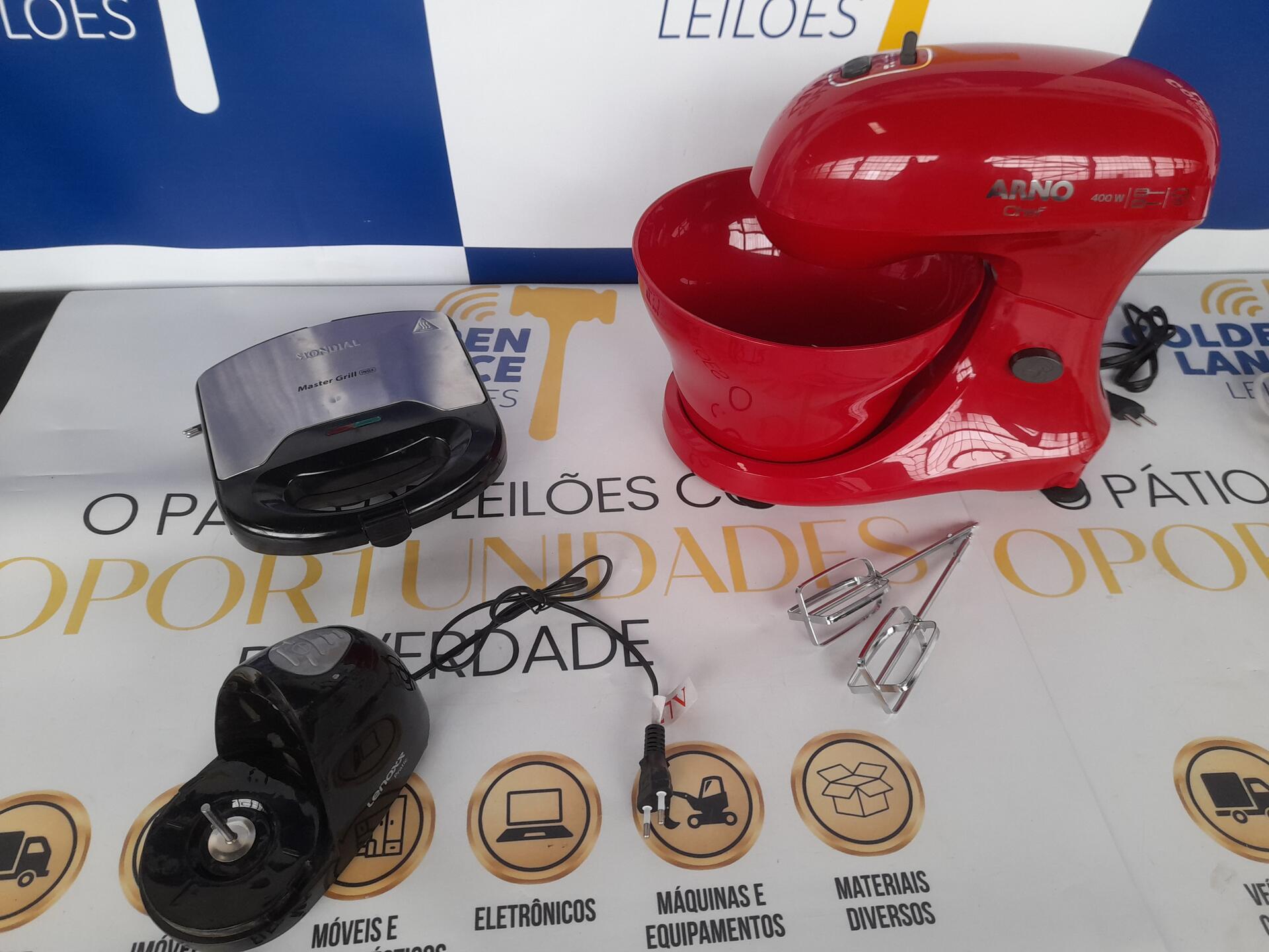 1 MINIPROCESADOR PRATIC LENOXX 127V - 1 VAPORIZADOR BDV3000 BLACK DECKER BIVOLT - 1 SANDUICHEIRA GRILL MASTER GRILL INOX MONDIAL 127V - 1 BATEDEIRA CHEF ARNO 127V - NO ESTADO QUE SE ENCONTRA