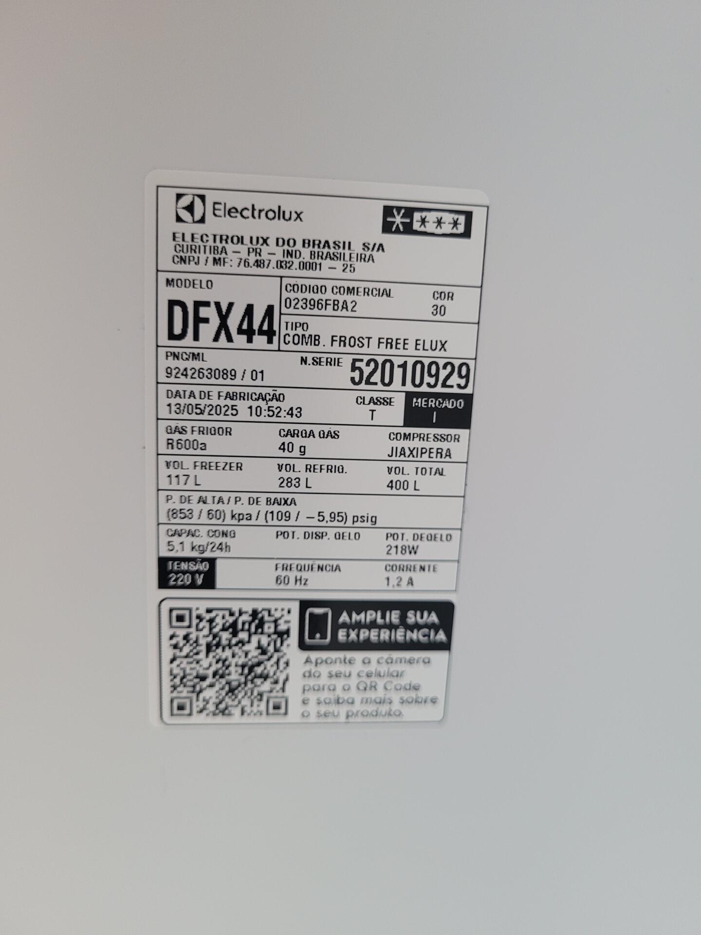 GELADEIRA ELECTROLUX FF DFX44 400L INOX 220V - NO ESTADO EM QUE SE ENCONTRA