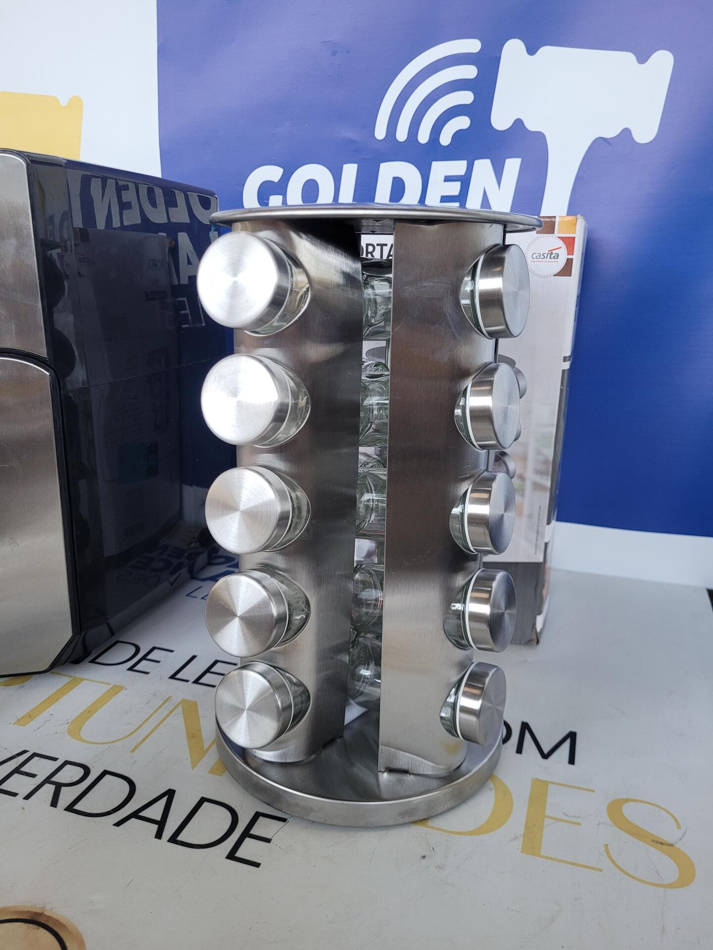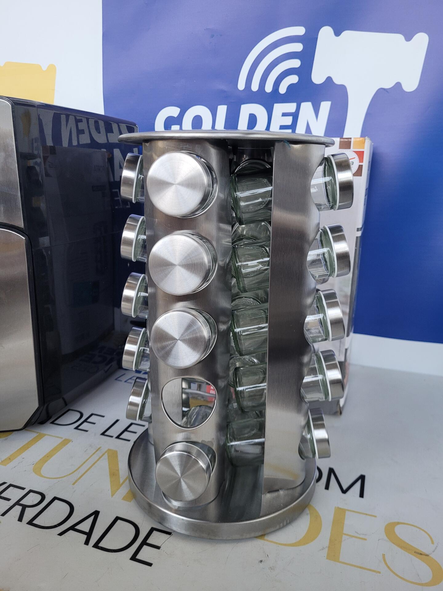 1 PORTA CONDIMENTOS BASE GIRATÓRIA INOX + VIDRO