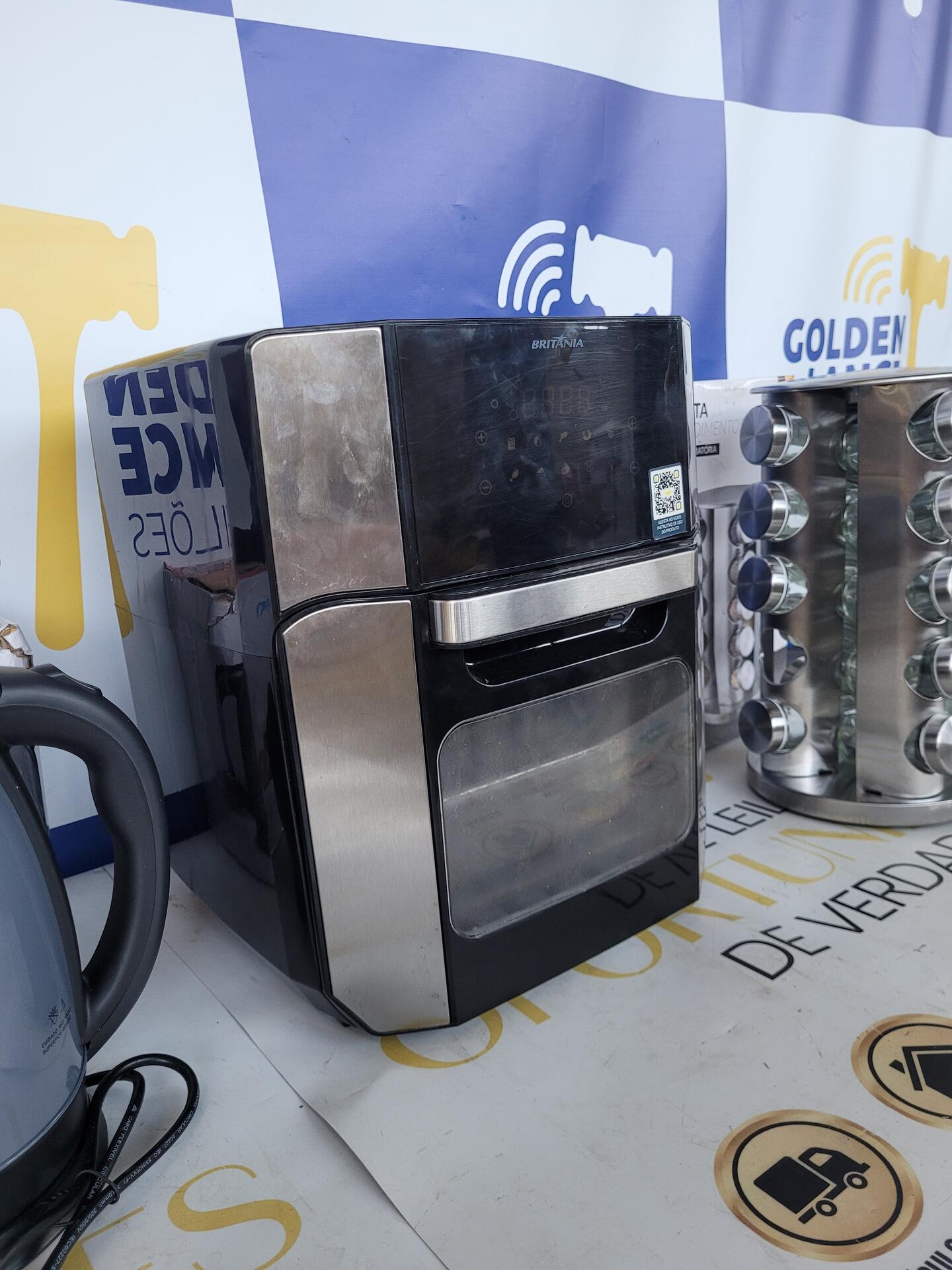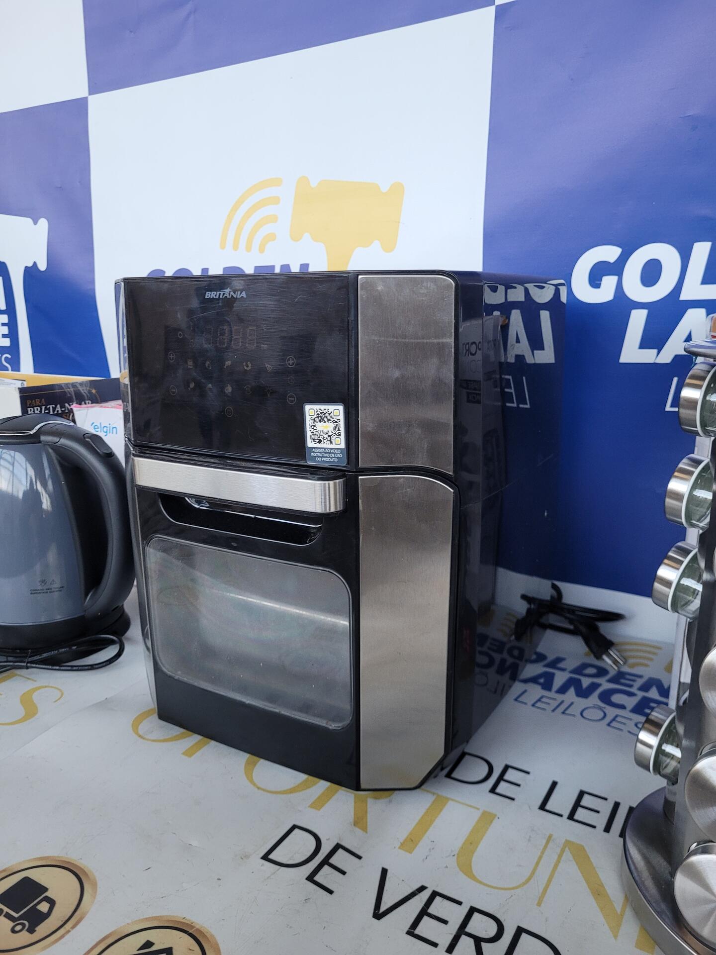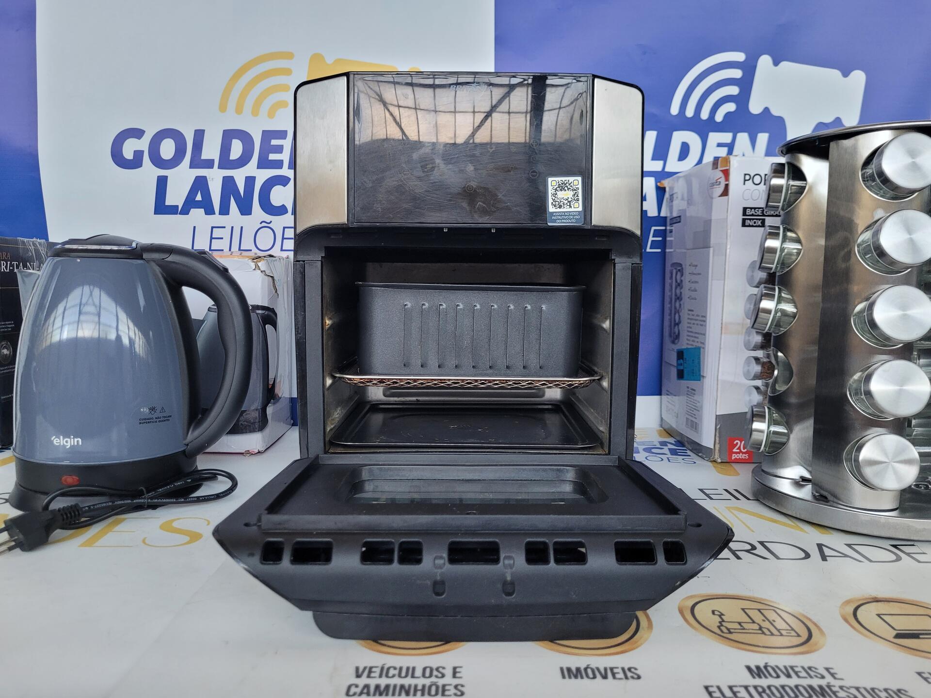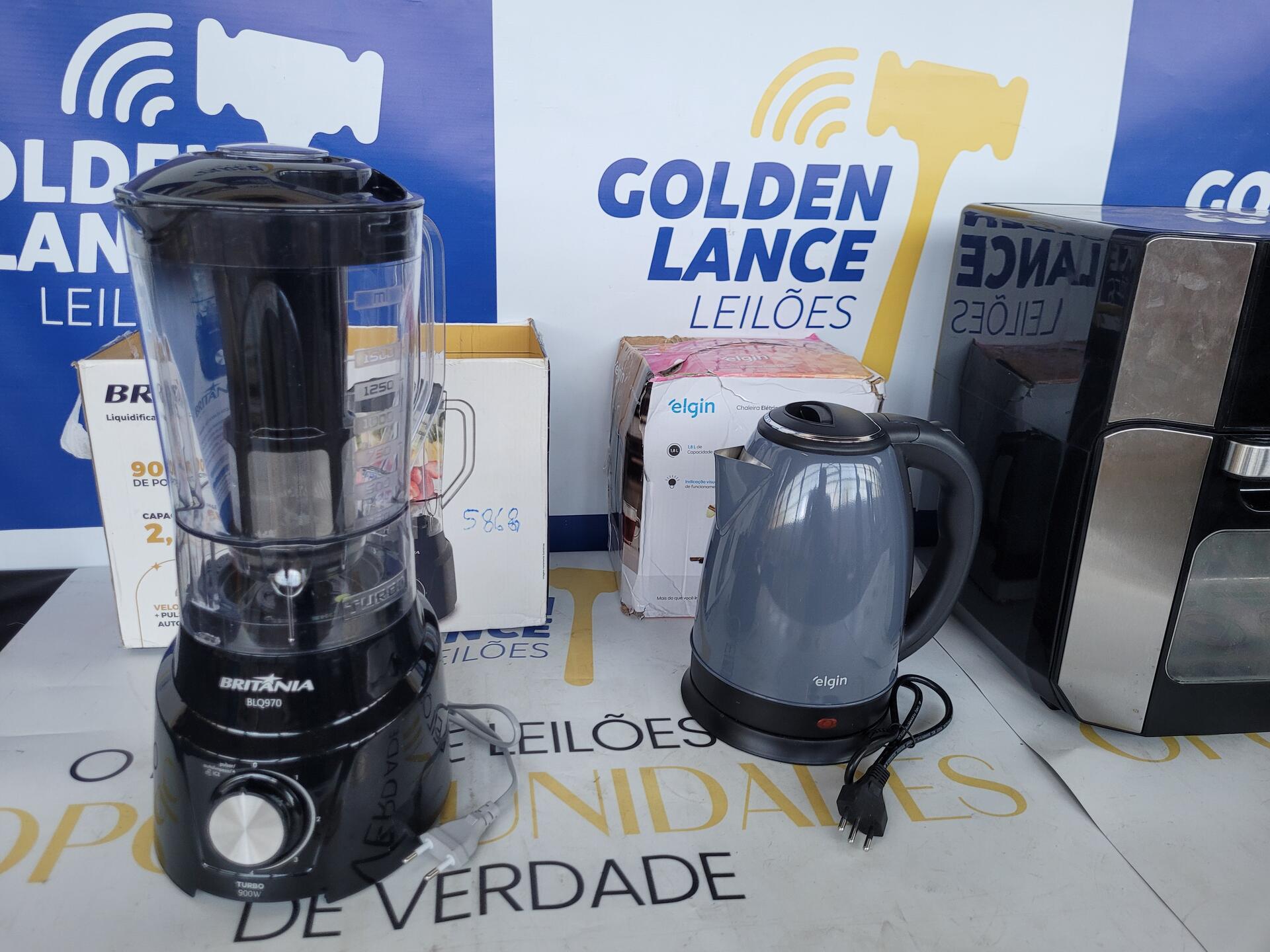 1 LIQUIDIFICADOR BRITÂNIA 9000W - 1 CHALEIRA 1200W 127V ELGIN - 1 FRITADEIRA ELÉTRICA OVEN 1800W 220V 1 PORTA CONDIMENTOS BASE GIRATÓRIA INOX + VIDRO