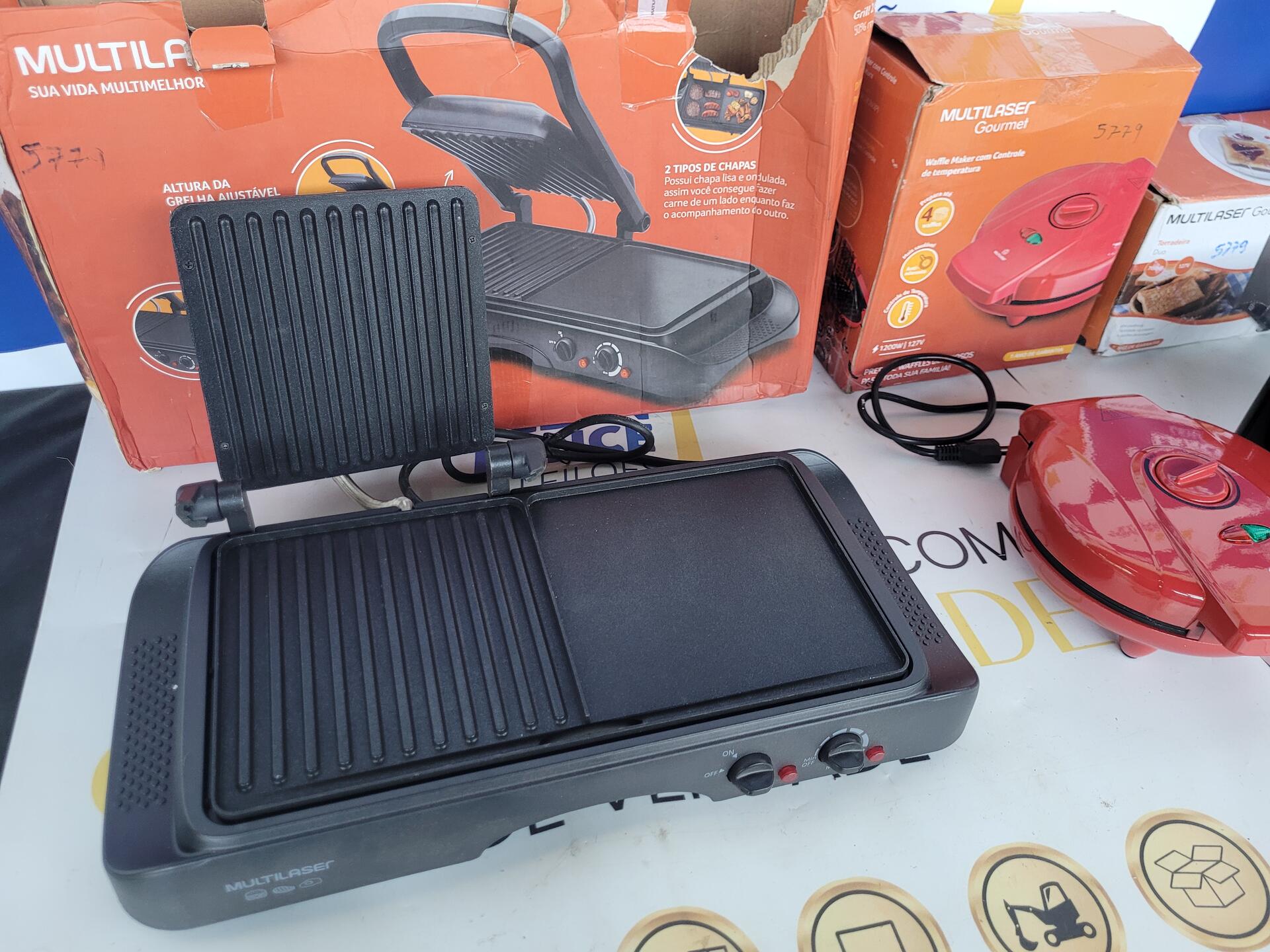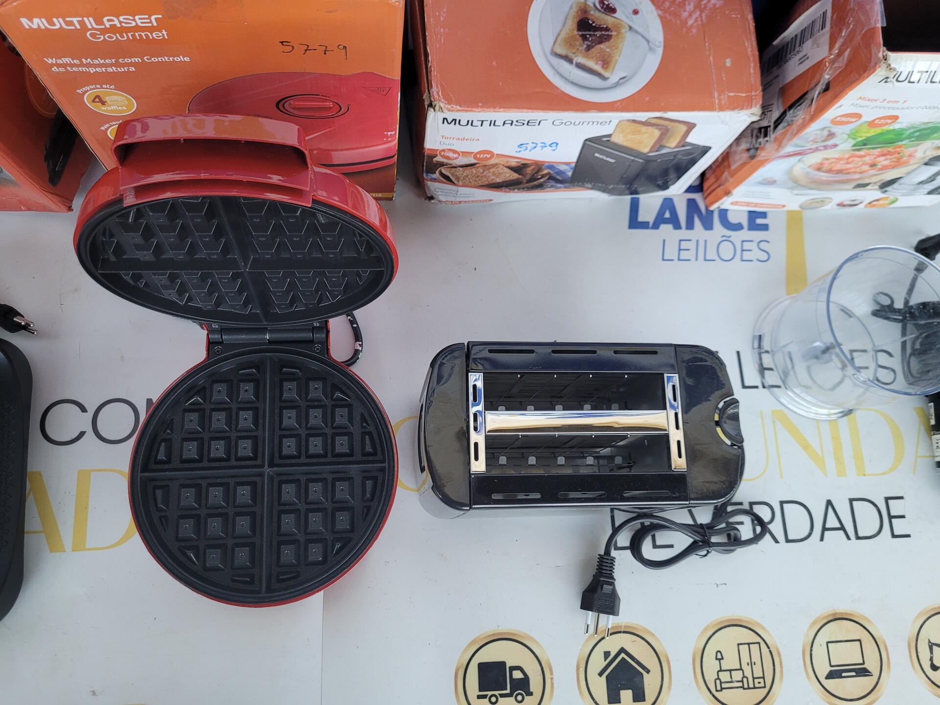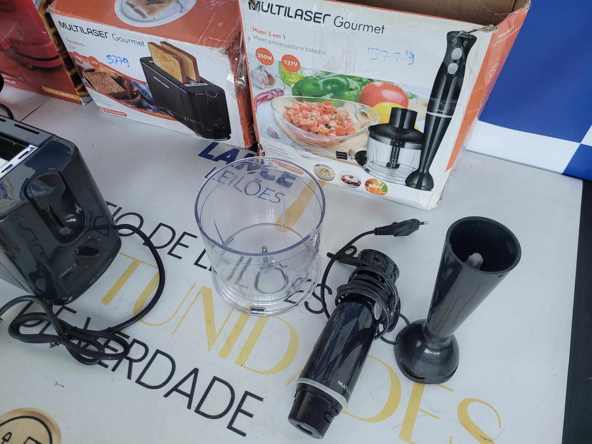 1 GRILL 2 EM 1 MULTILASER - 1 WAFFLE MAKER COM CONTROLE DE TEMPERATURA 1200W 127V - 1 TORRADEIRA DUO 700W 127V - 1 MIXER 3 EM 1 350W 127V