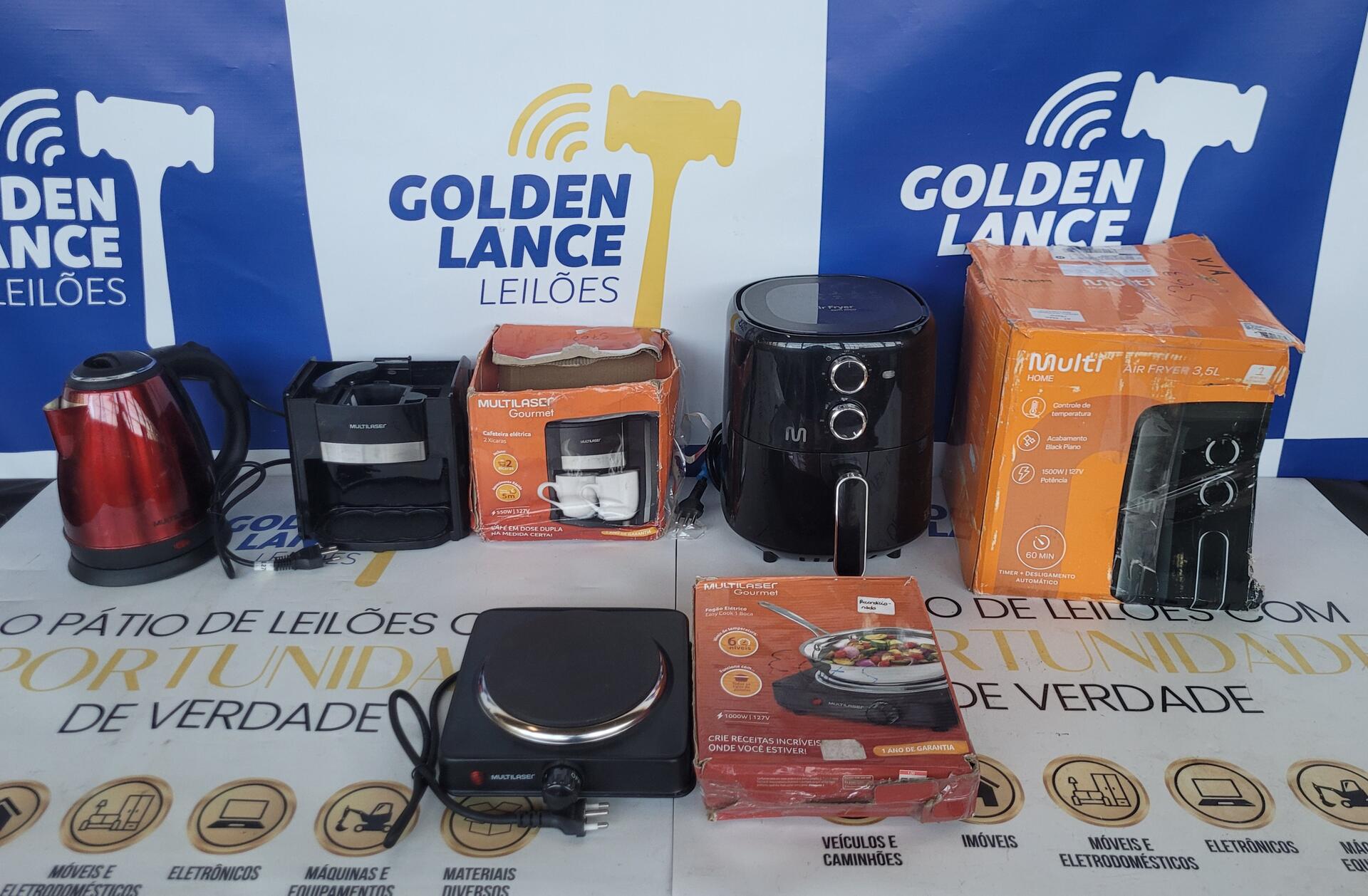 1 FOGÃO MULTILASER 1 BOCA 127V 1000W - 1 CHALEIRA 127V 1150W - 1 CAFETEIRA 550W 127V 1 FRITADEIRA ELÉTRICA 127V 1500W