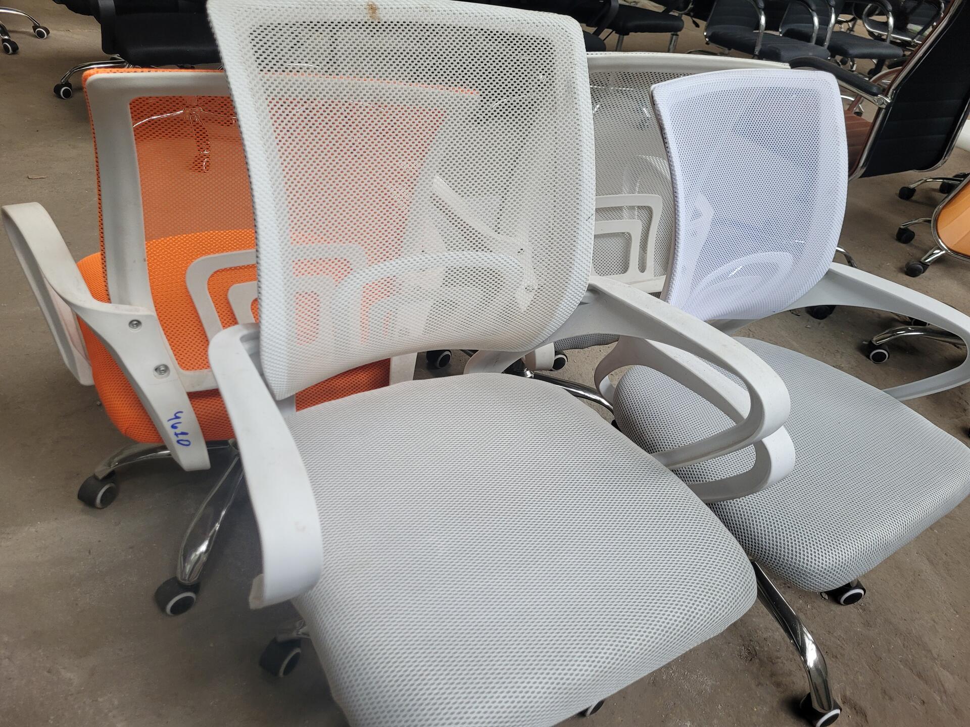 4 CADEIRAS DE ESCRITORIO - NO ESTADO QUE SE ENCONTRA 3 BRANCA 1 LARANJA