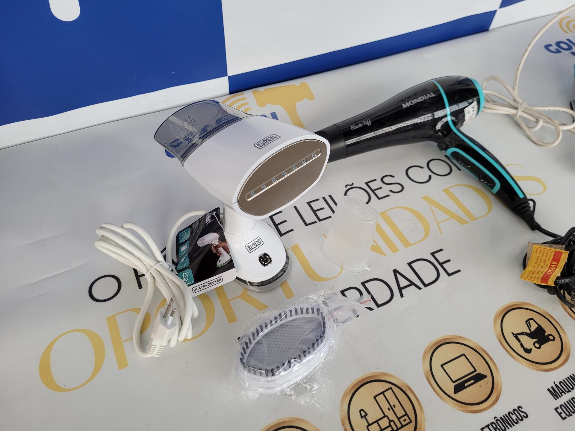 1 VAPORIZADOR 3 EM 1 BLACK DECKER BIVOLT 1 SECADOR BLACK TIFF 127V 1 FERRO A VAPOR BRITANIA 127V 1 PRANCHA MODELADORA GOLD MULTILASER BIVOLT - NO ESTADO QUE SE ENCONTRA