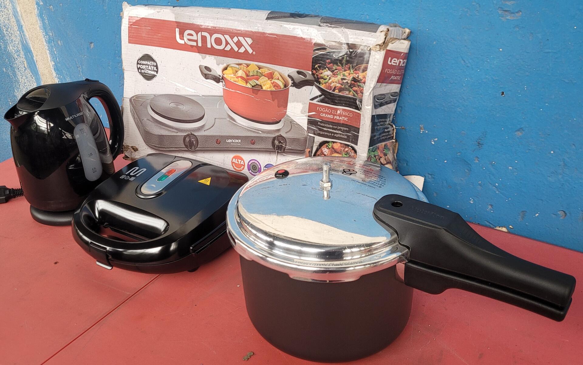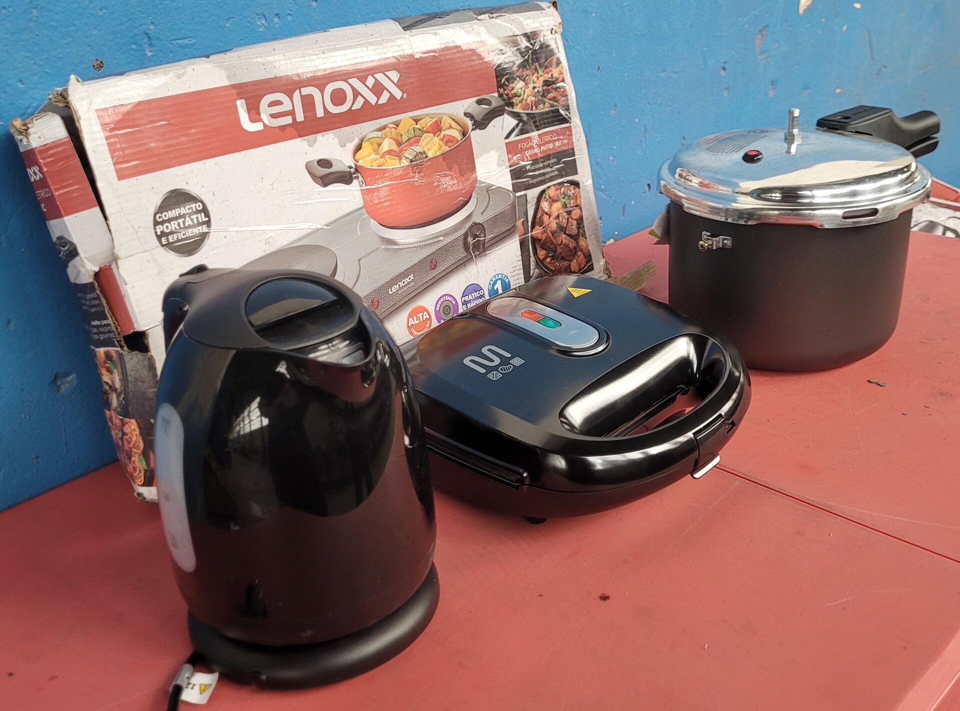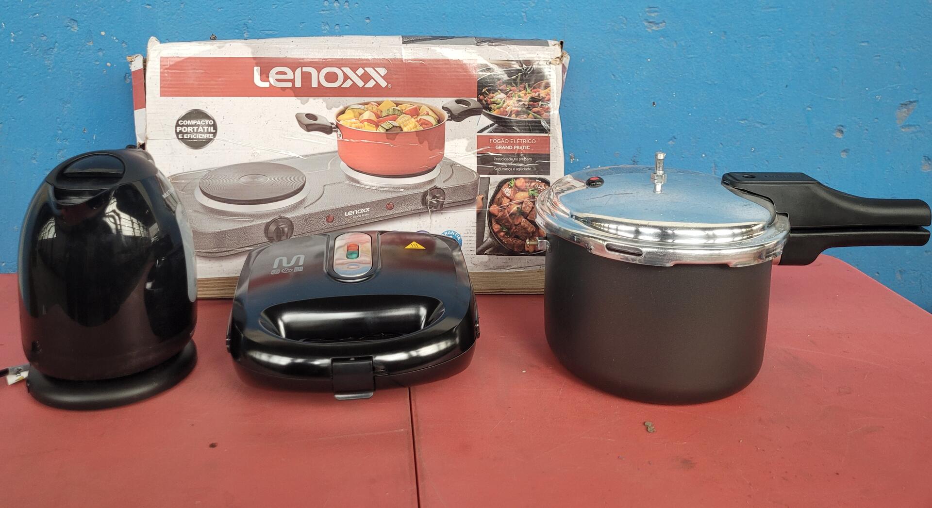 1 CHALEIRA ELÉTRICA MULTILASER 127V 1 GRILL ELETRICO 3 EM 1 MULTI 127V 1 PANELA DE PRESSÃO MUKTIFLON 4,5L 1 FOGÃO ELÉTRICO GRAND PRATIC LENOXX 127V - NO ESTADO QUE SE ENCONTRA