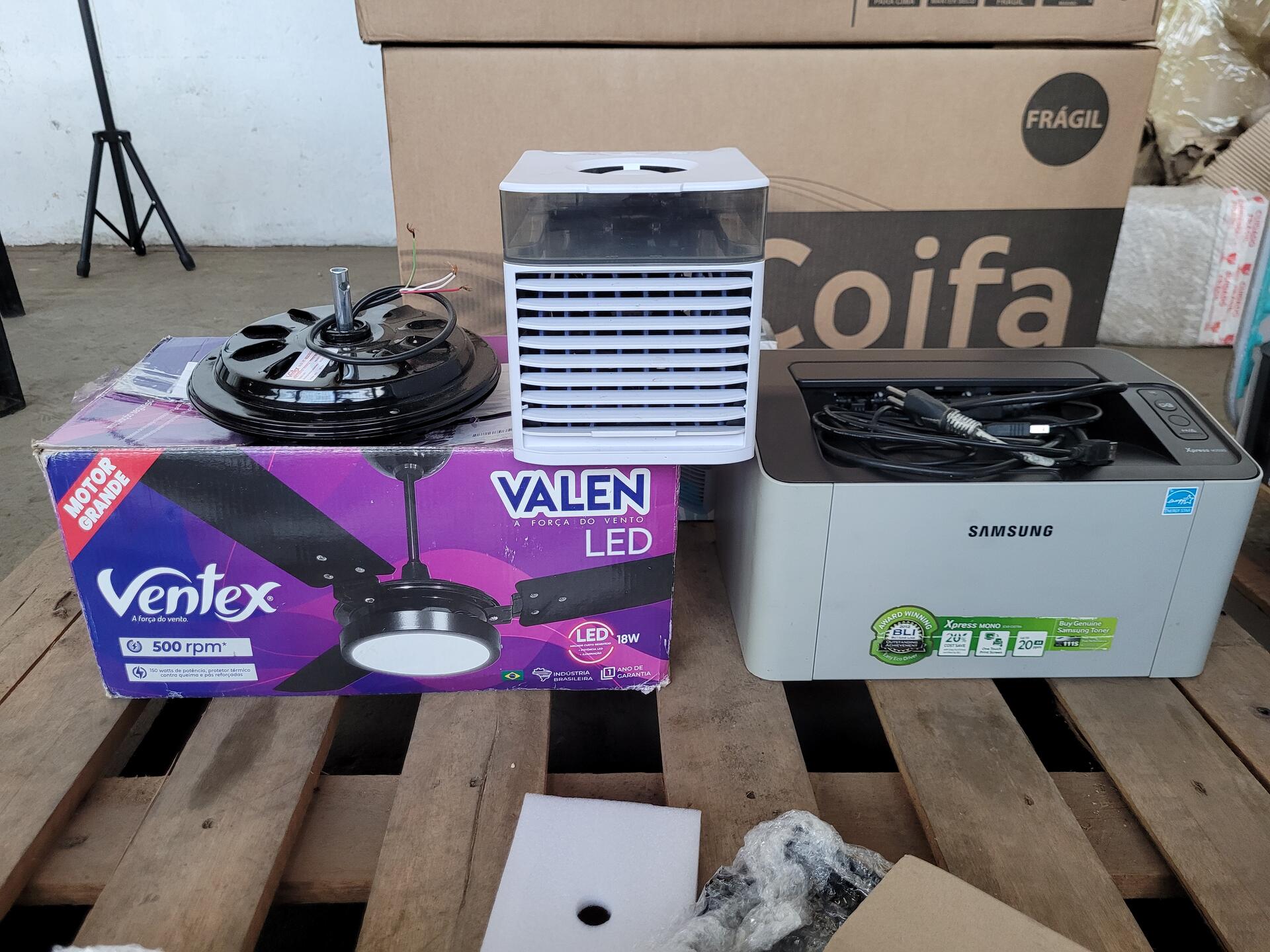 1 IMPRESSORA SAMSUNG M2020 - 1 PLACA DE TV LG 42LG50 - 2 TECLADOS HP SEM FIO - 1 CAPA P/ TABLET GALAXY TAB A7 10.4 " - LUMINÁRIA LED 18W 1350 LÚMENS - MINI AR CONDICIONADO - CONVERSORES - 1 PLACA LAVADORA PANASONIC NA-B6 B7 220V - 1 VENTILADOR DE TETO