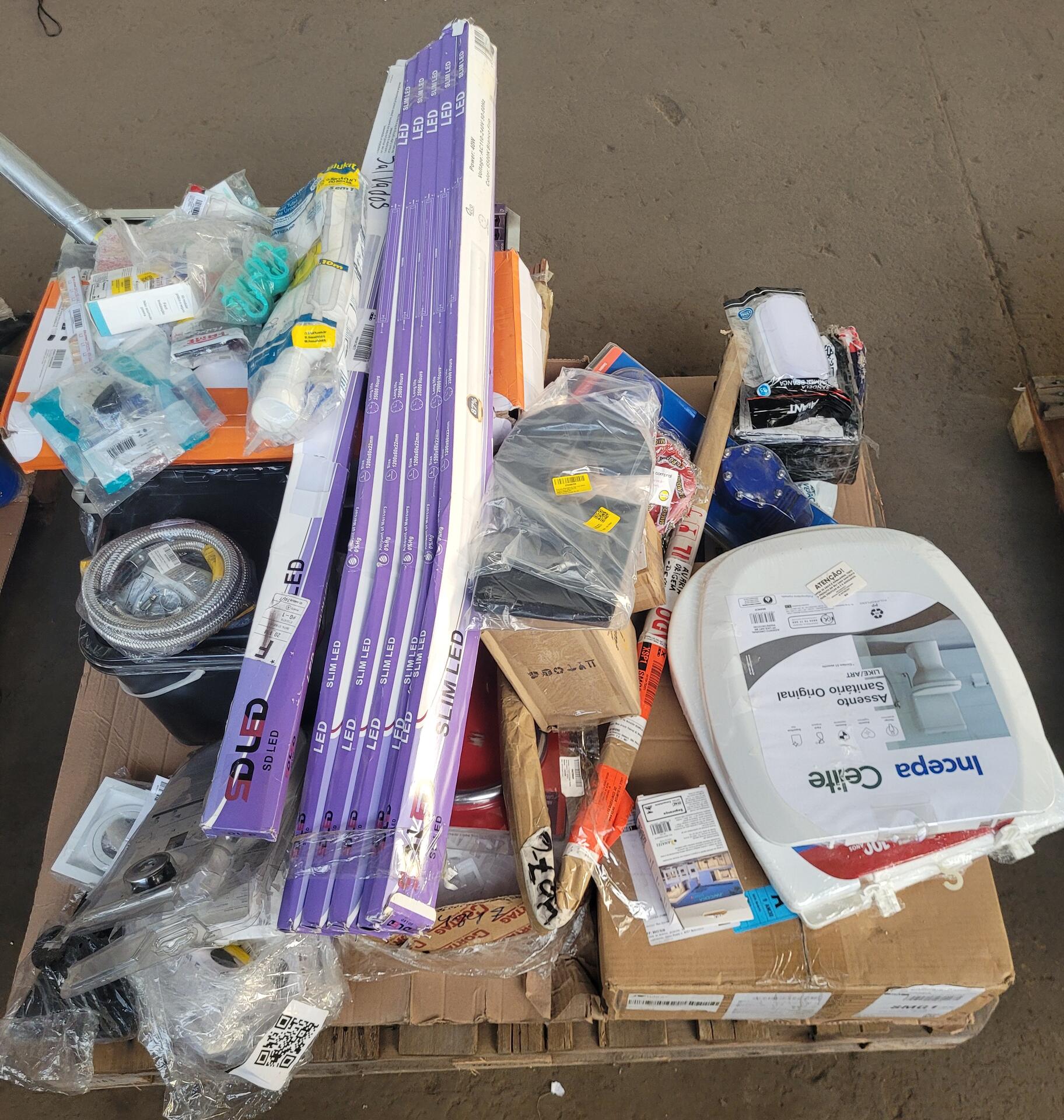 DIVERSAS KIT DE EMBUTIR RECUADOR PAR20 LED PIX - DIVERSOS CANOS - 1 ANEL DE VEDAÇÃO P/ VAZO SANITÁRIO - DIVERSAS LUMINARIAS DE PICINA - 1 INTERRUPTOR DIGITAL - 3 ASSENTOS DE VAZO SANITARIO - 1 TORNEIRA DE COZINHA PAREDE LEÃO - 1 CHUVEIRO FAMINTO BLACK - 1 TORNEIRA DE BOIA CENSI - 1 CUBA DE INOX - DIVERSOS ESPAÇADOR NIVELADOR - MANTA EMBORRACHADA FLEXIVEL CERÃMICA 18KG - 1 CUBA DE CERÃMICA - NO ESTADO QUE SE ENCONTRA