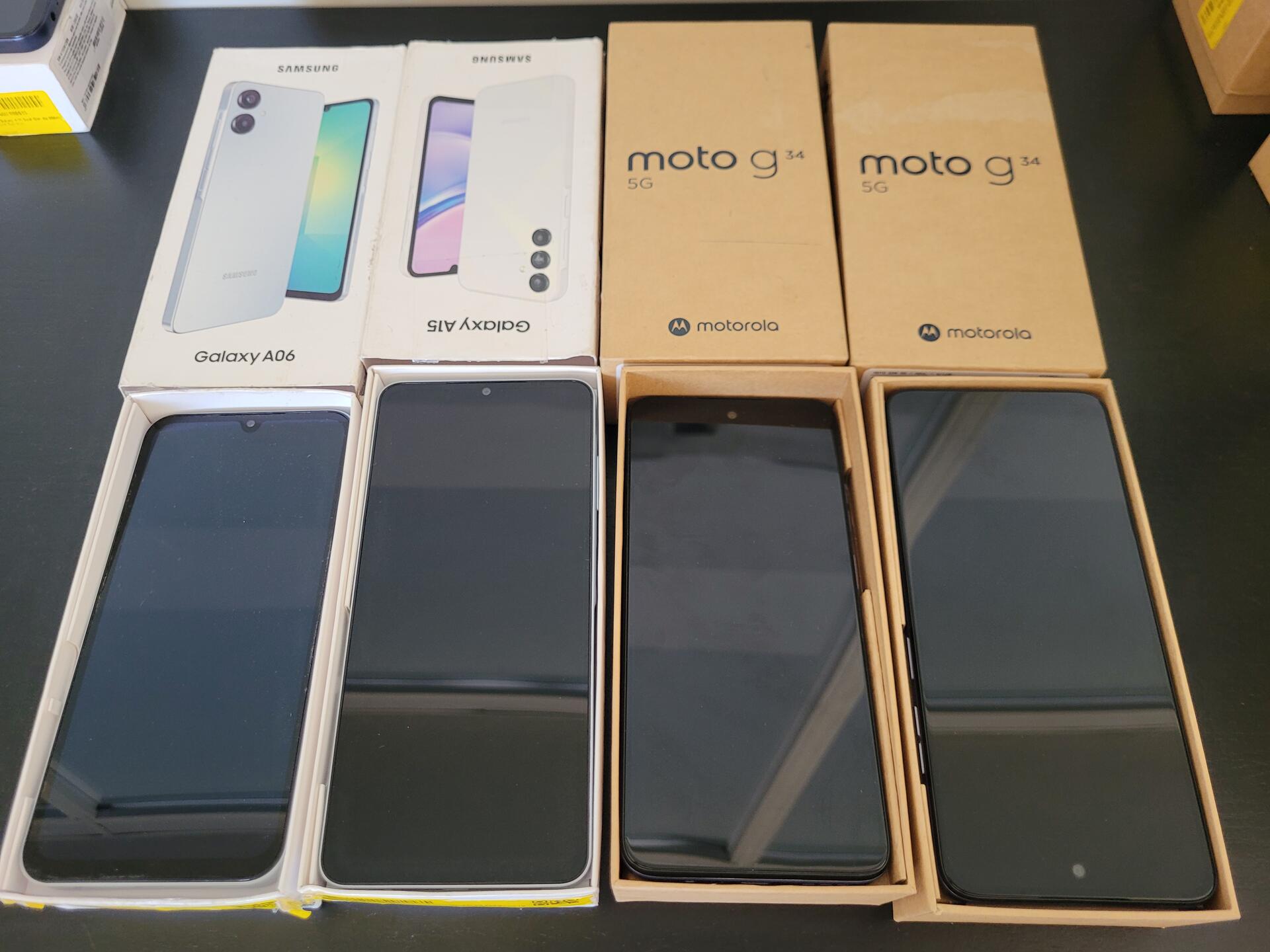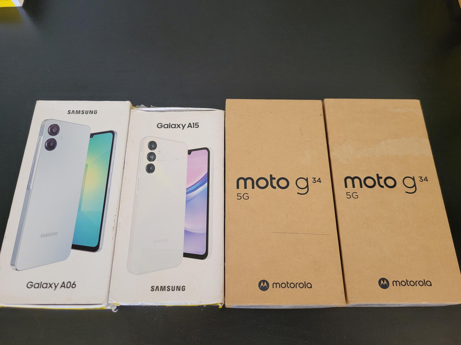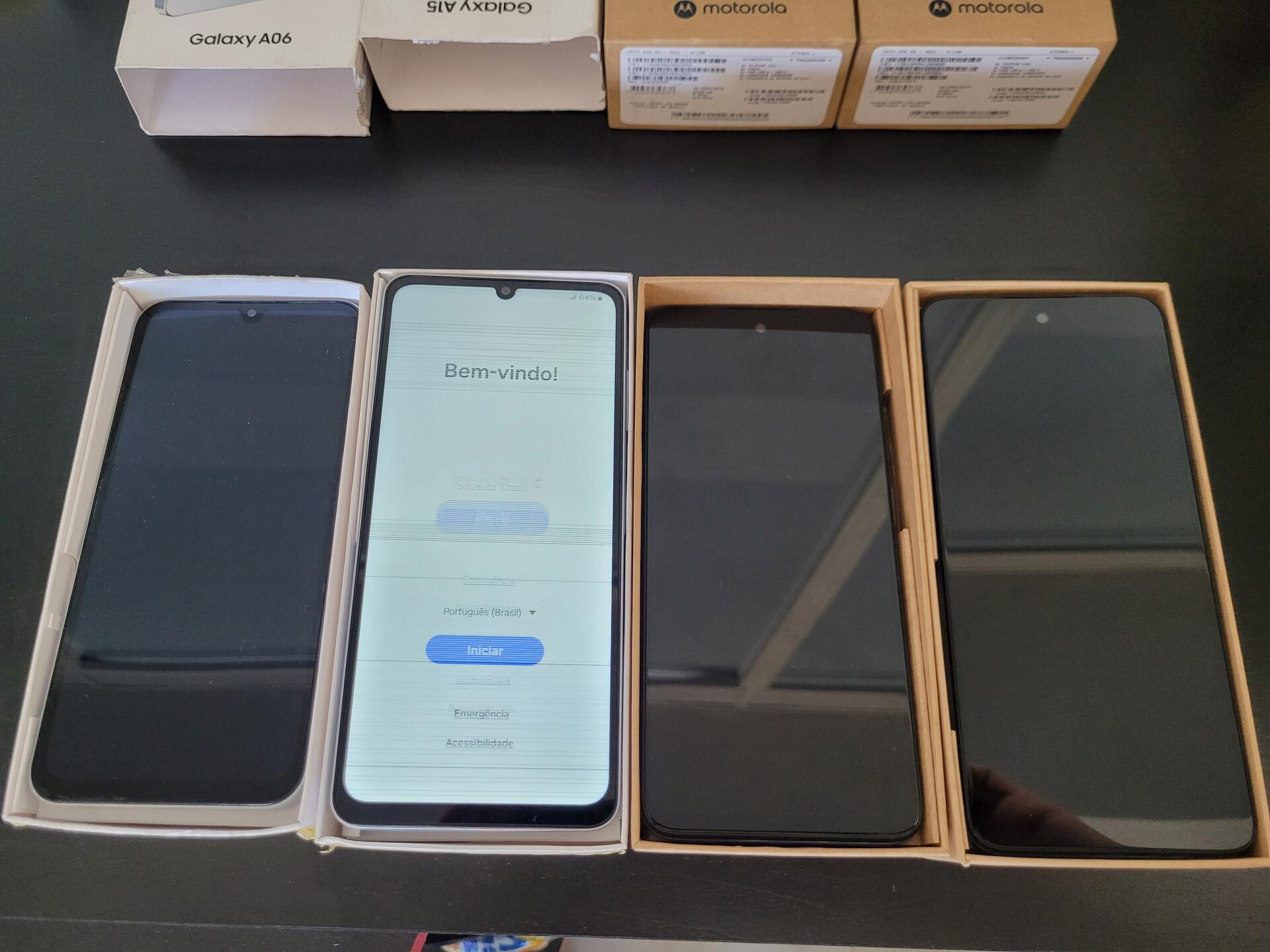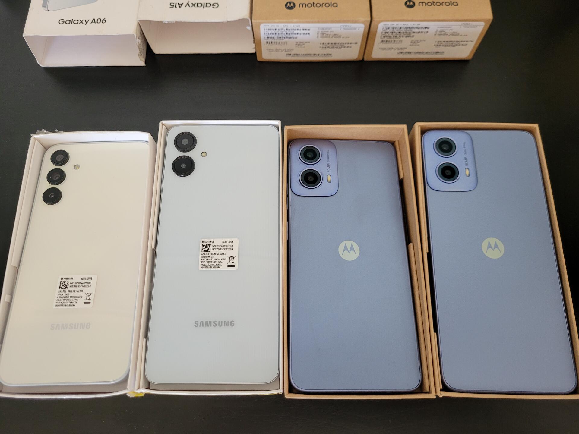 1 MOTOROLA G34 AZUL - 1 MOTORLA G34 5G ( CELULAR VIBRA NÃO MOSTRA VÍDEO) - 1 SAMSUNG GALAXY A15 DUAL SIM 4G ( NÃO LIGA) - 1 SAMSUNG GALAXY A06 DUAL SIM BRANCO ( LIGA - VISOR COM DEFEITO)