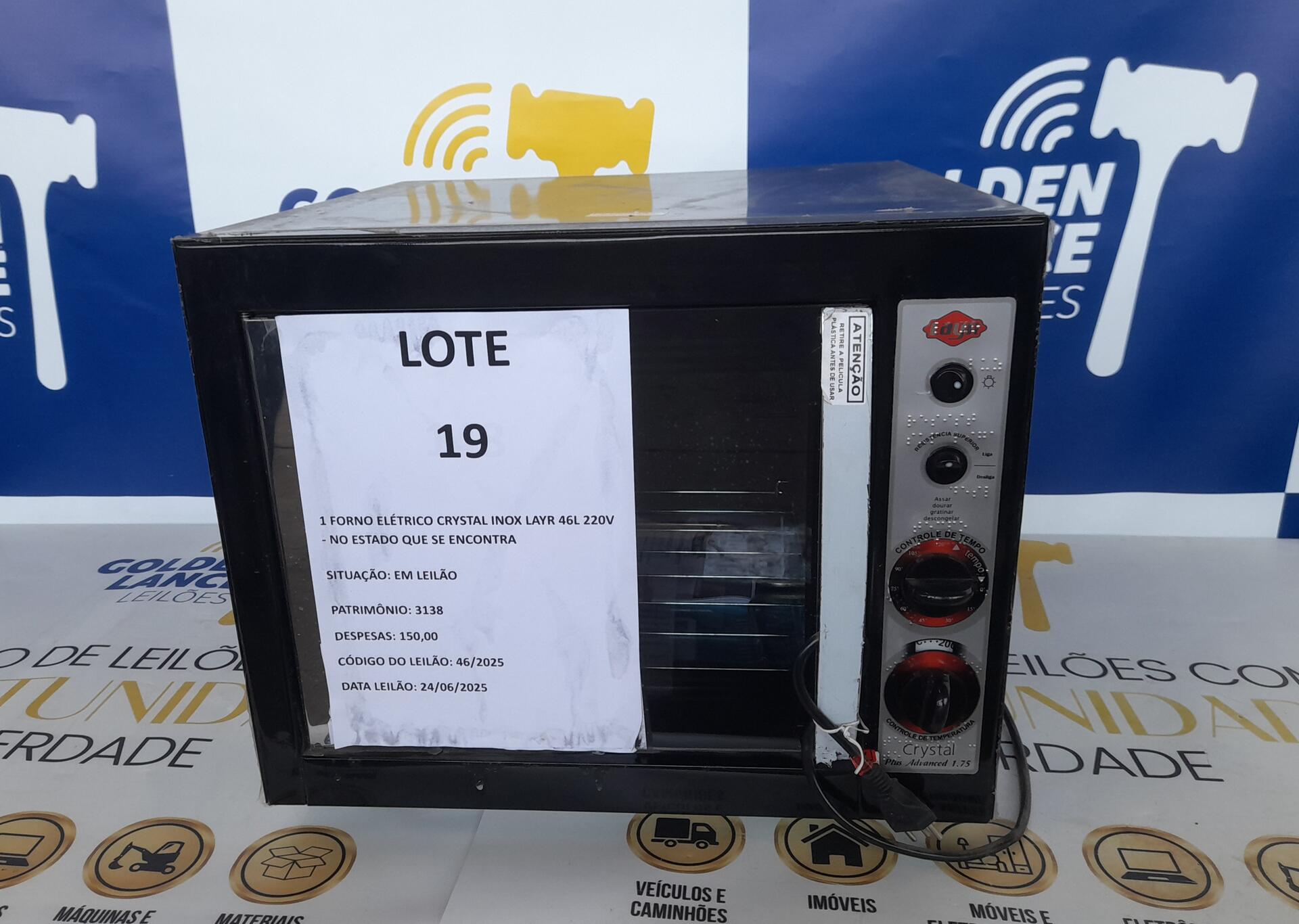 1 FORNO ELÉTRICO CRYSTAL LAYR 46L 220V - NO ESTADO QUE SE ENCONTRA