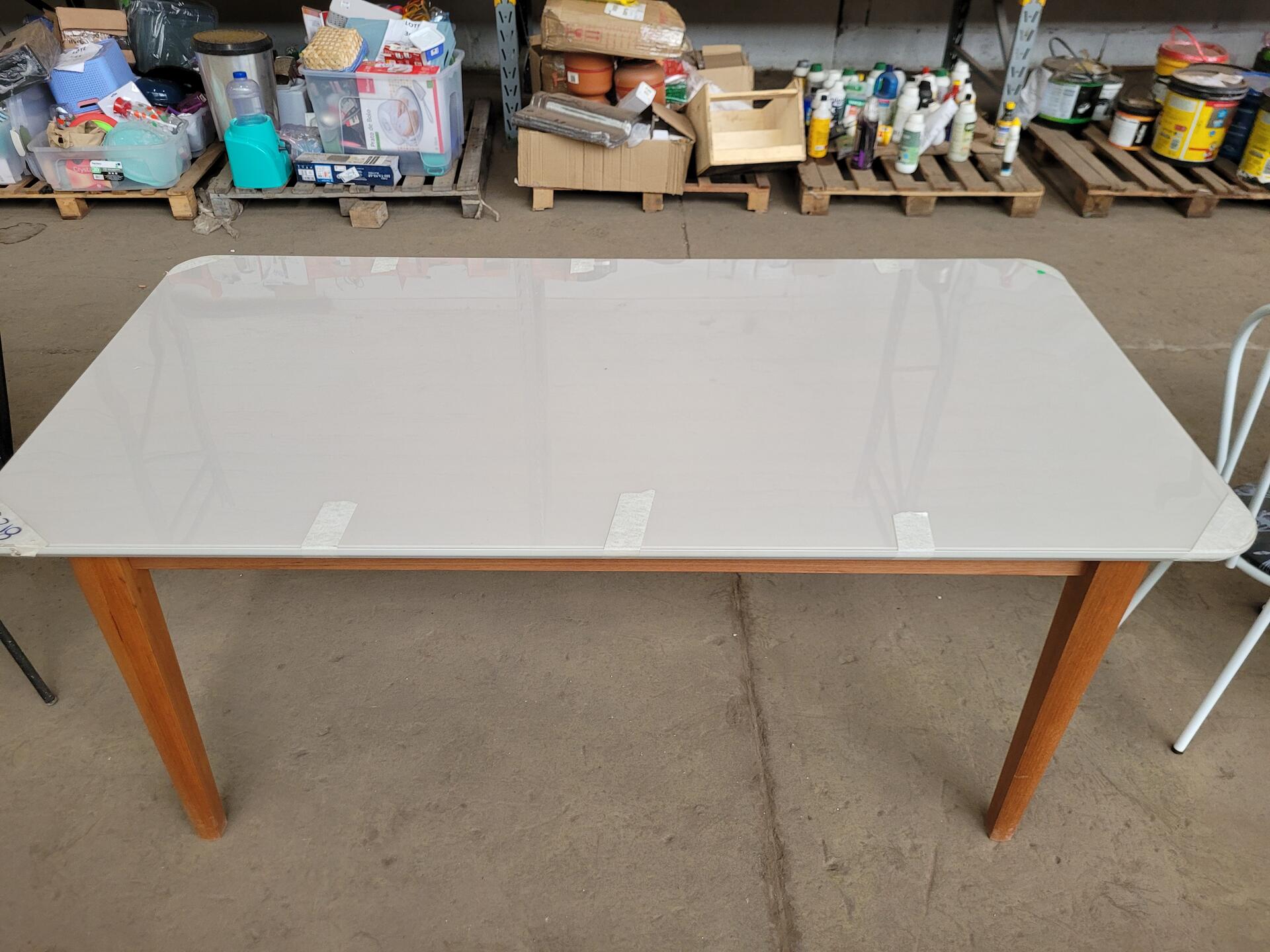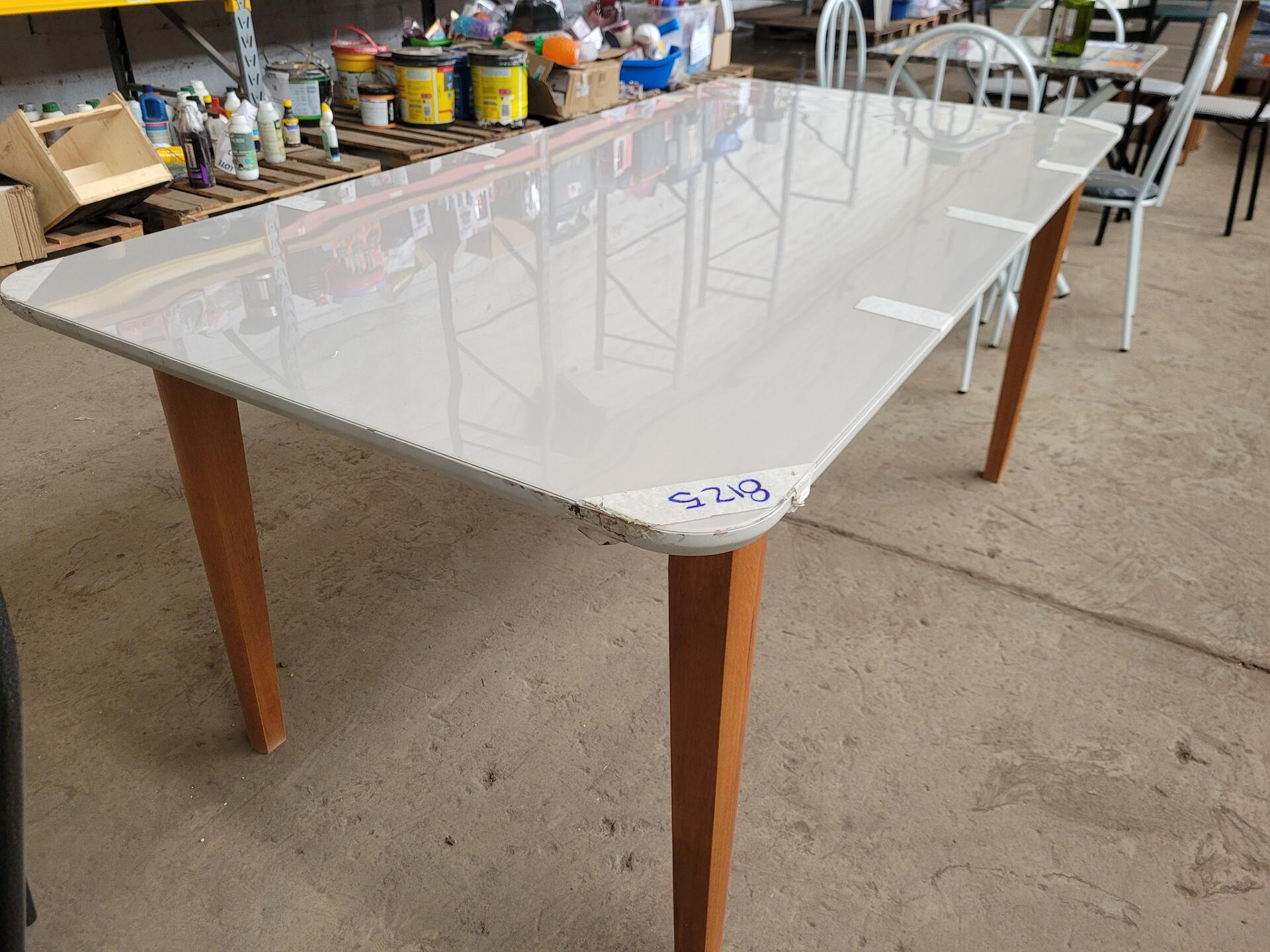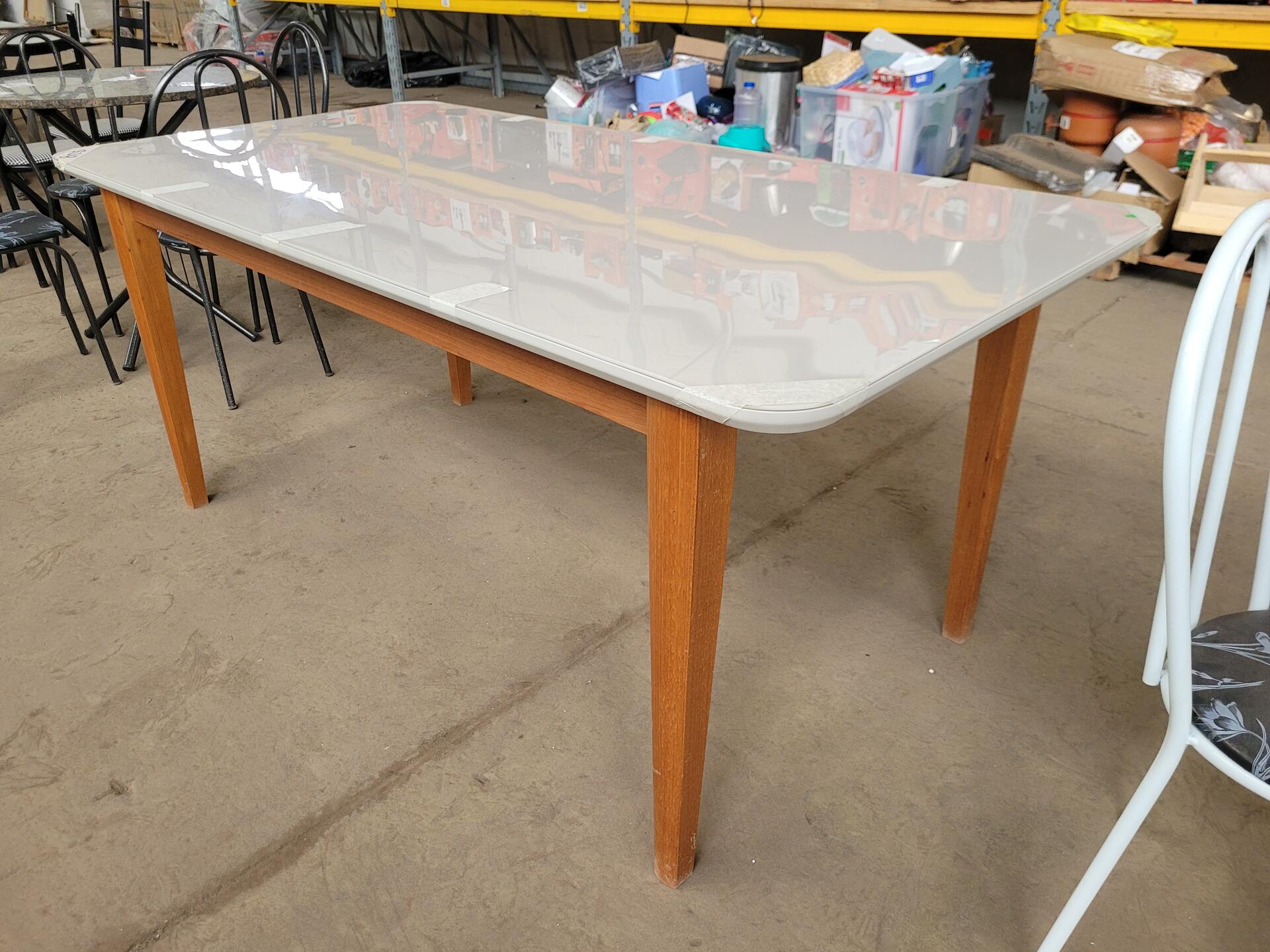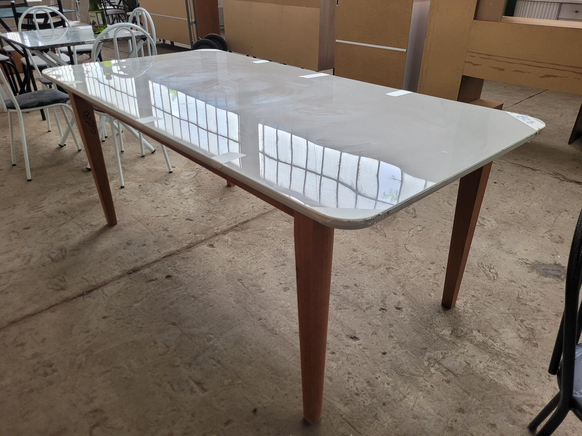 MESA EM MADEIRA COM TAMPO EM VIDRO - NO ESTADO EM QUE SE ENCONTRA