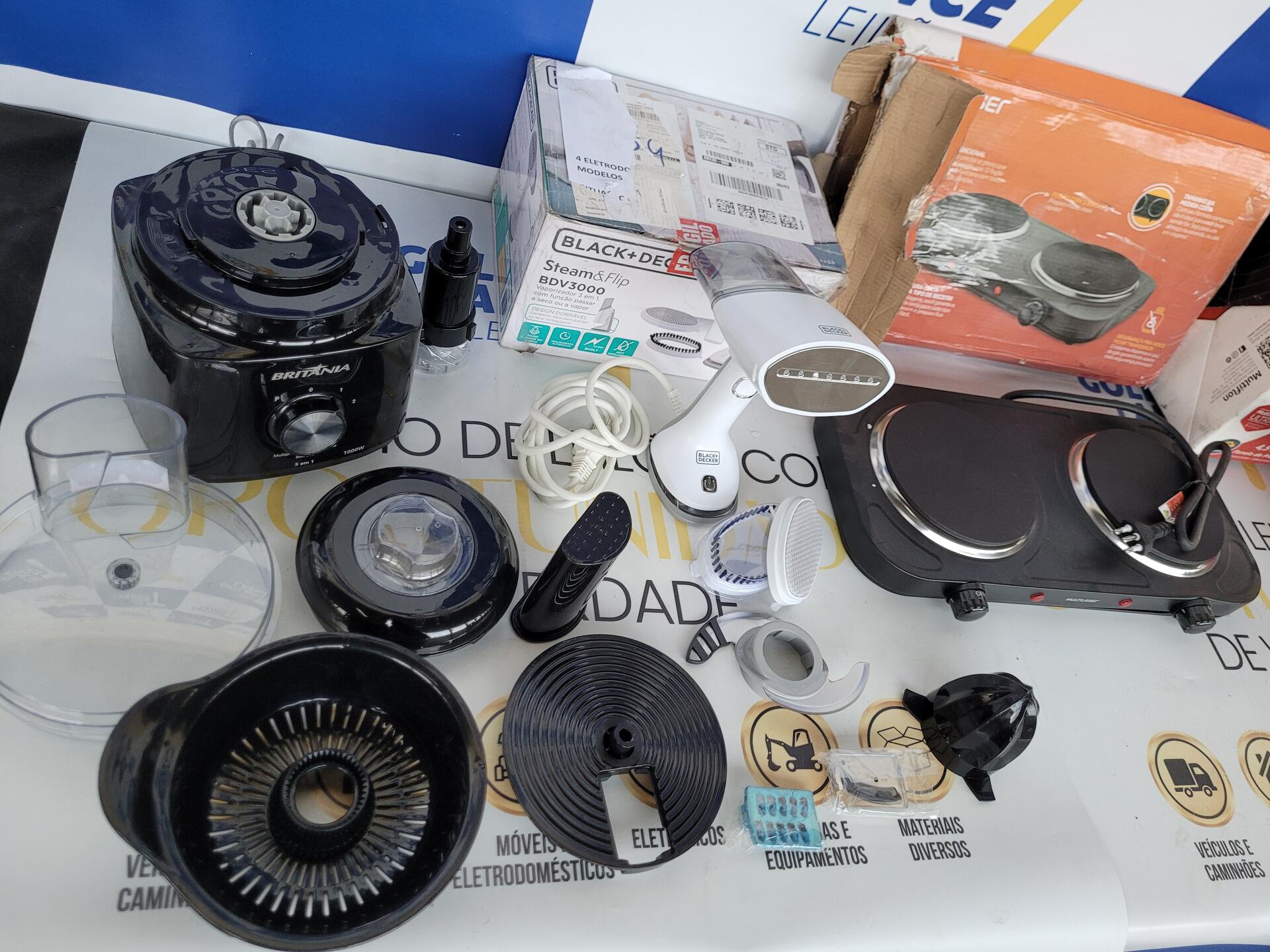 1 VAPORIZADOR 3 EM 1 BDV3000 BLACK DECKER BIVOLT - 1 PANELA DE PRESSÃO 4,5L MULTIFLON - 1 FOGÃO ELÉTRICO EASY COOK 2 BOCAS 127V - PEÇAS DO MULTIPROCESSADOR ALL IN ONE BRITANIA BMP900 220V - NO ESTADO QUE SE ENCONTRA