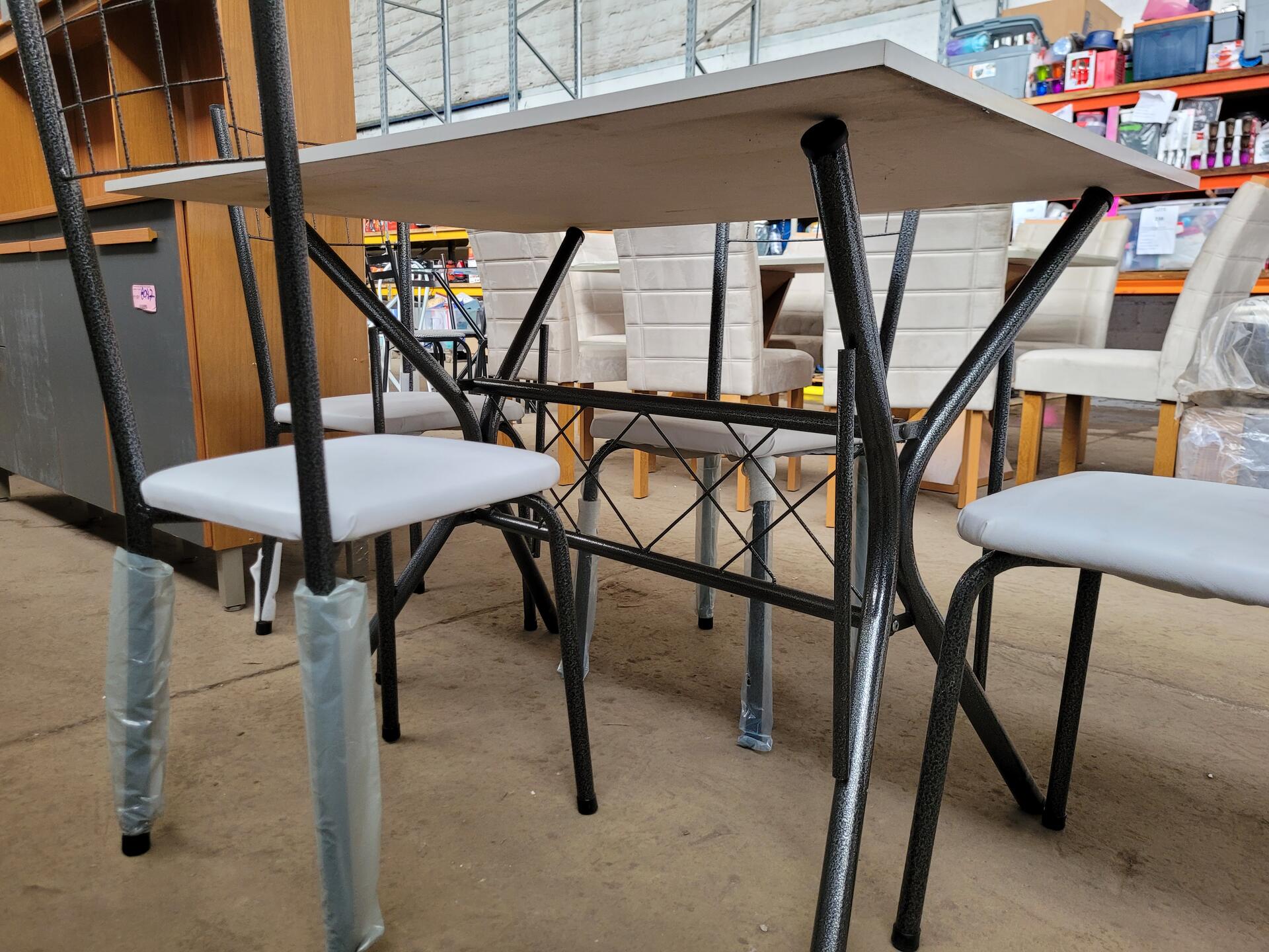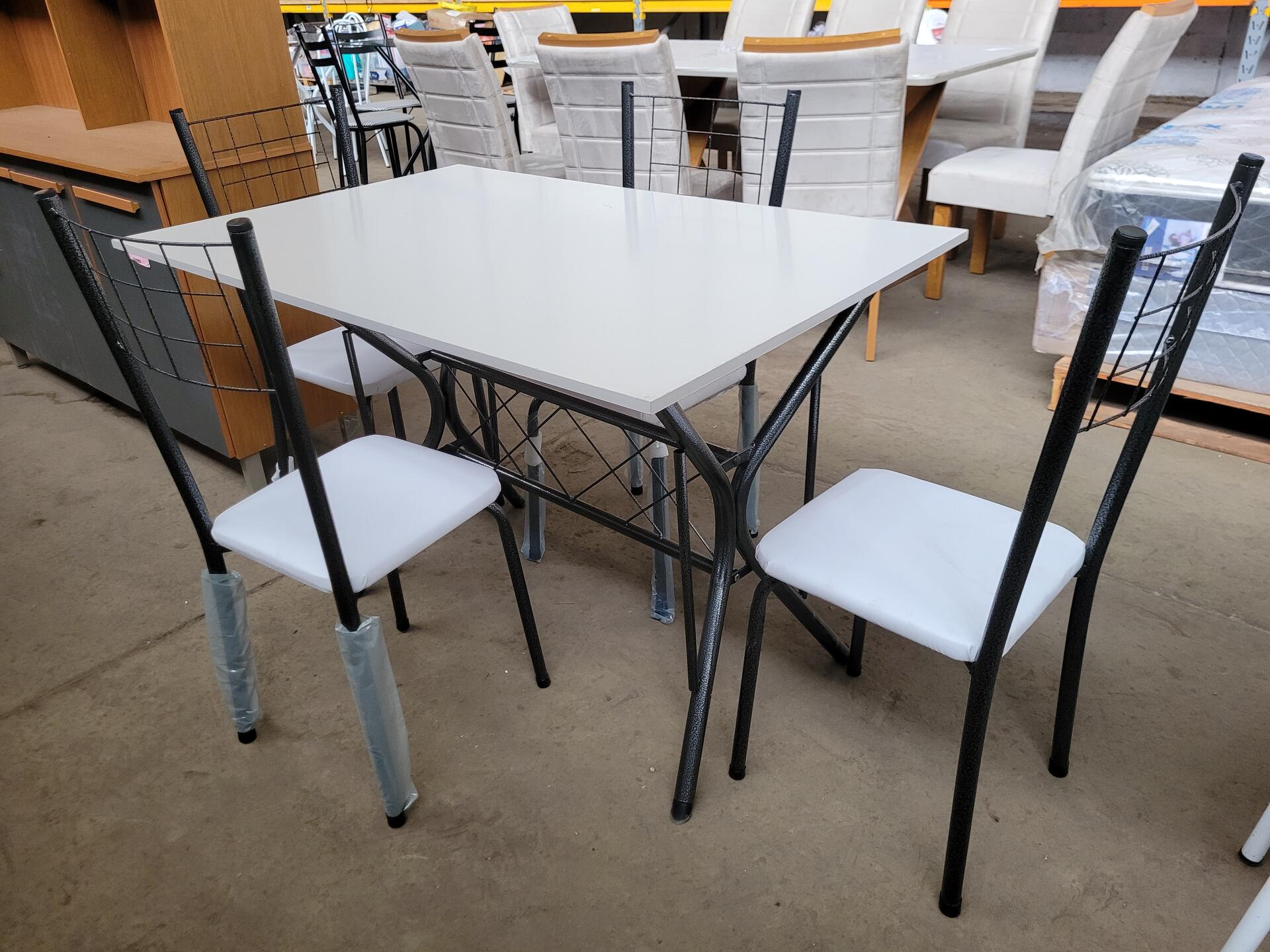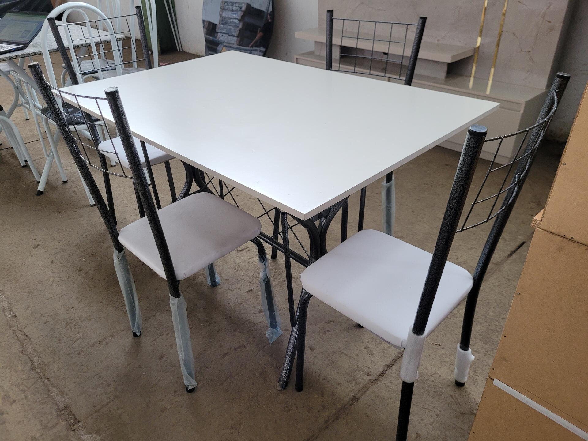 CONJUNTO MESA COM 4 CADEIRAS PRETO COM TAMPO MADEIRA BRANCO - NO ESTADO EM QUE SE ENCONTRA
