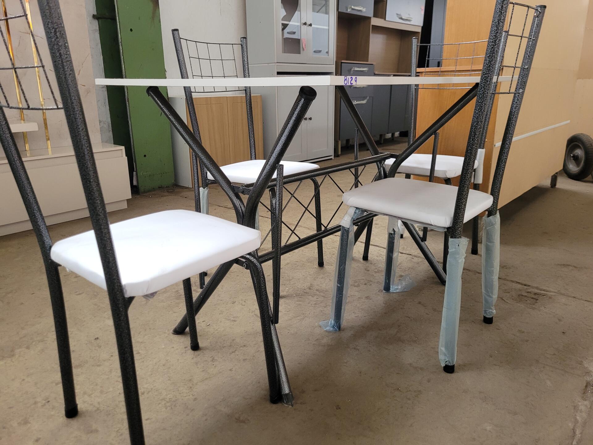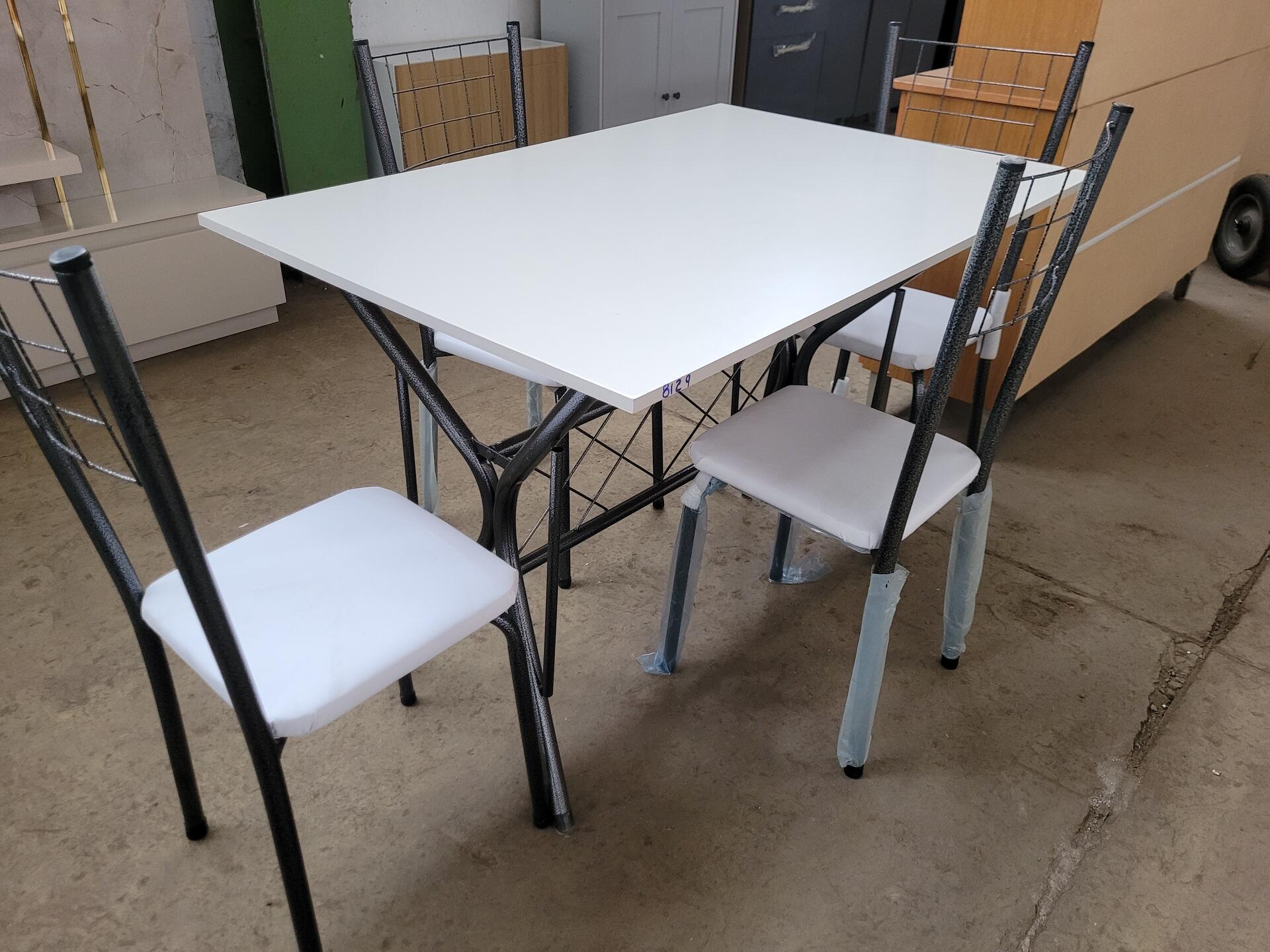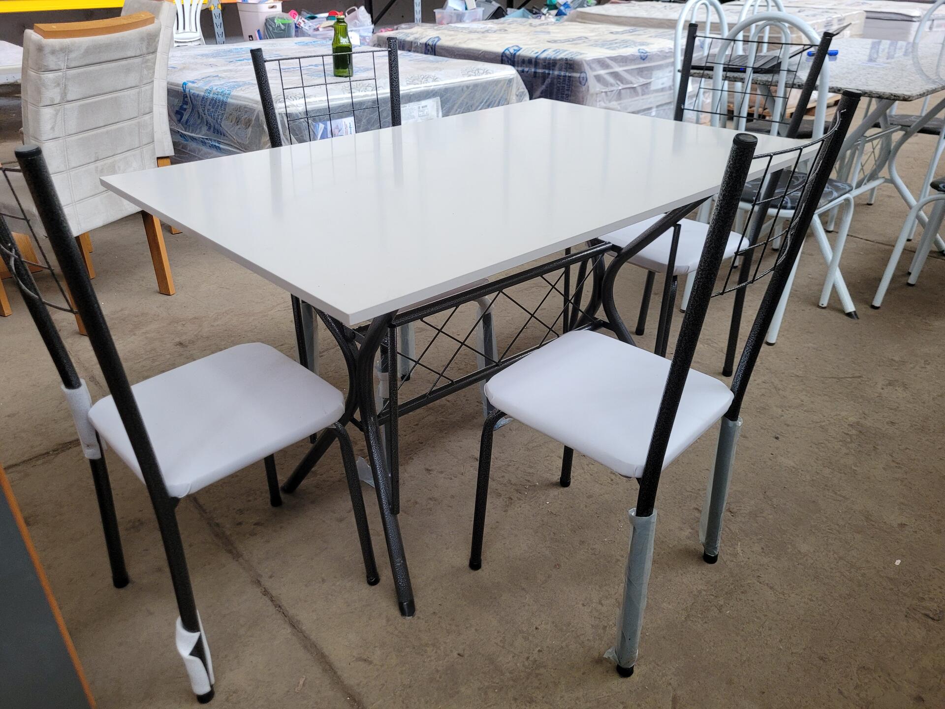 CONJUNTO MESA COM 4 CADEIRAS PRETO COM TAMPO MADEIRA BRANCO - NO ESTADO EM QUE SE ENCONTRA