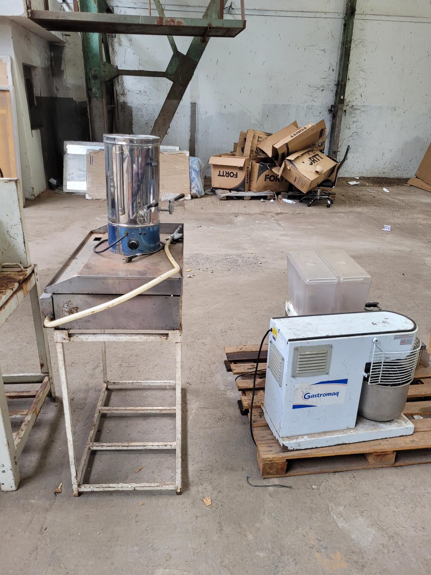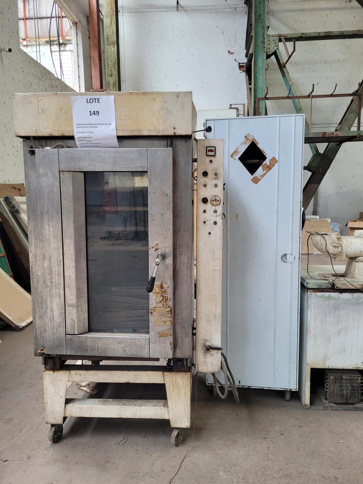 DIVERSOS EQUIPAMENTOS INDUSTRIAIS 1 FORNO 1 ARMÁRIO P/ PÃO 1 BATEDEIRA 1 REFRESQUEIRA 1 SANDUICHEIRA 1 MASSEIRA 1 RALADOR D/ QUEIJO - NO ESTADO QUE SE ENCONTRA