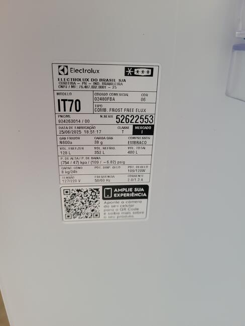 GELADEIRA ELECTROLUX FF IT70 480L BR BIVOLT - NO ESTADO EM QUE SE ENCONTRA
