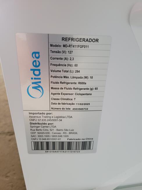 GELADEIRA MIDEA MD RT411FGF 294L BR 110V - NO ESTADO EM QUE SE ENCONTRA